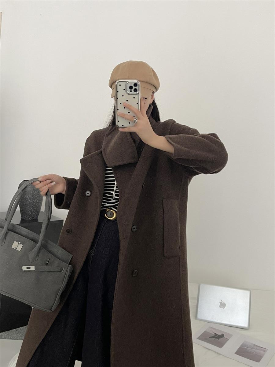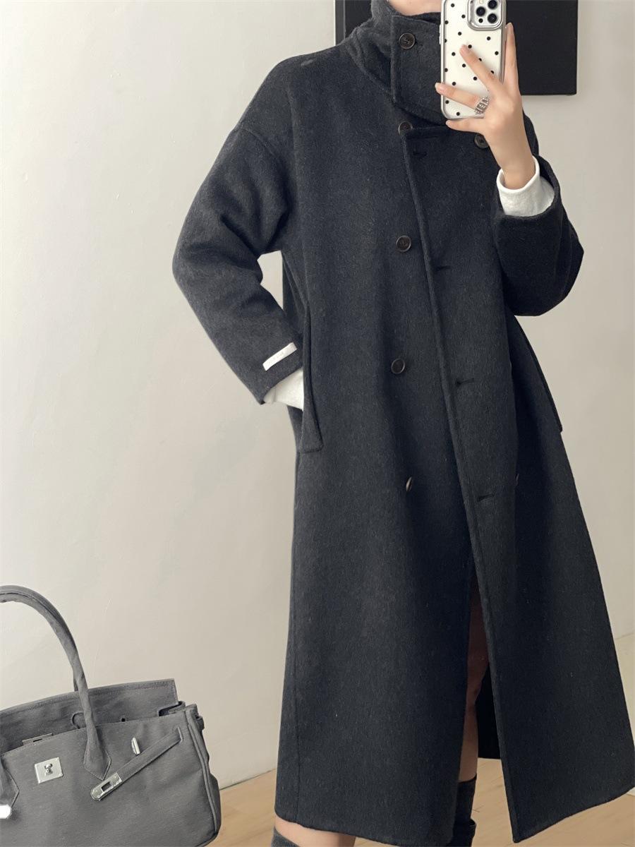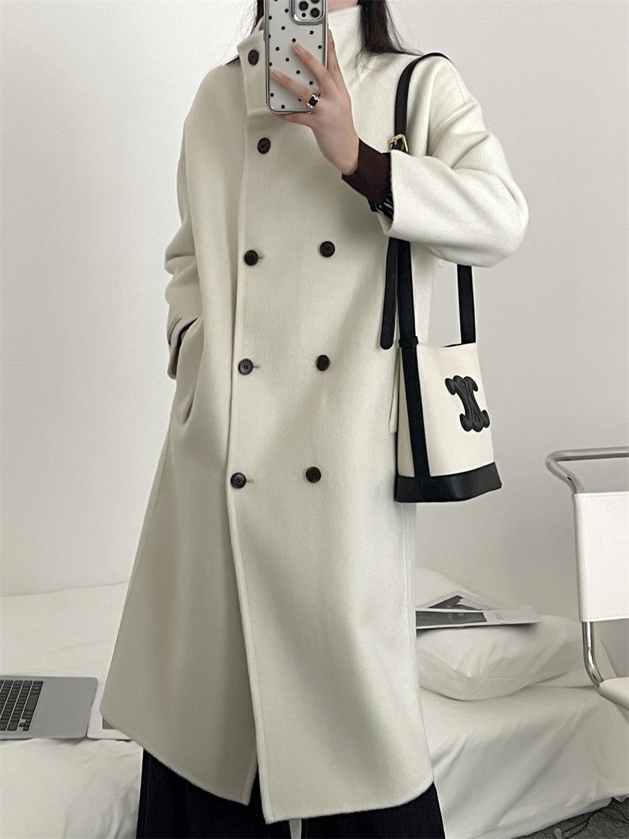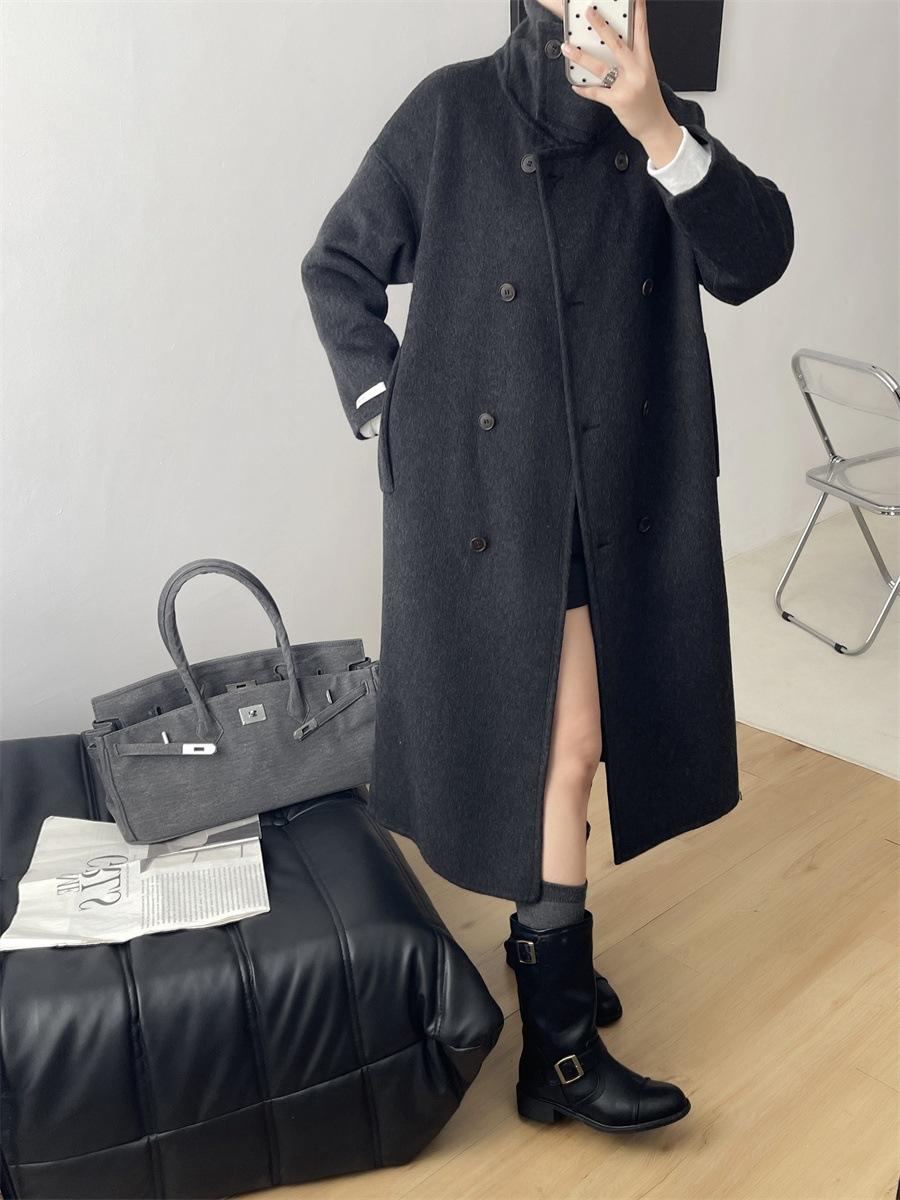 Abrigo de Lana Nuevo 2024 de Doble Cara Cuello Elegante Largo Suelto de Alta Gama Abrigo de Lana para Mujer para Otoño e Invierno X2379