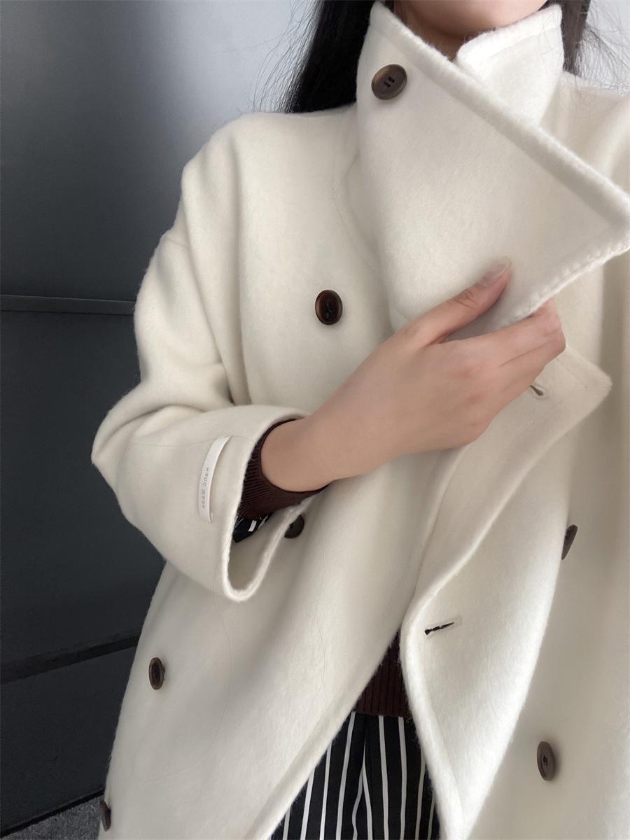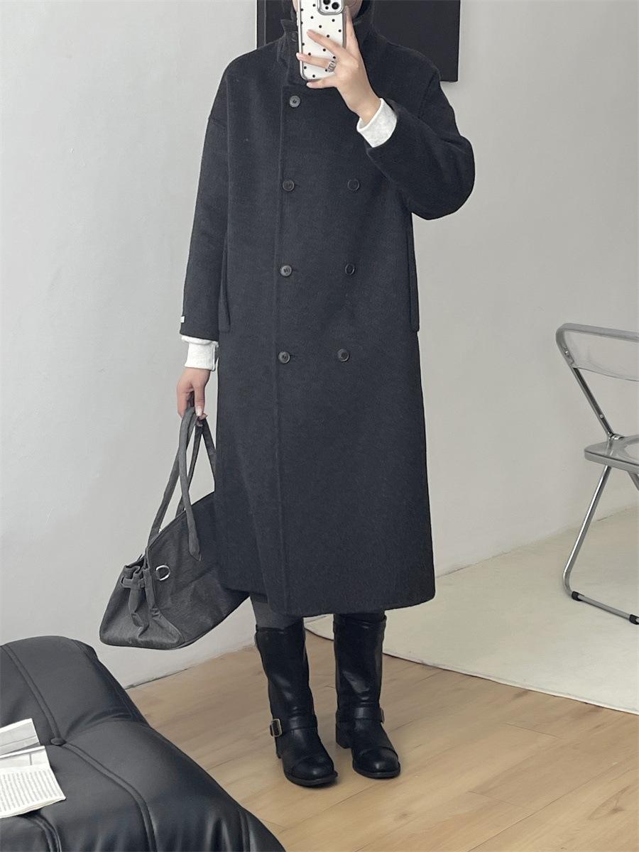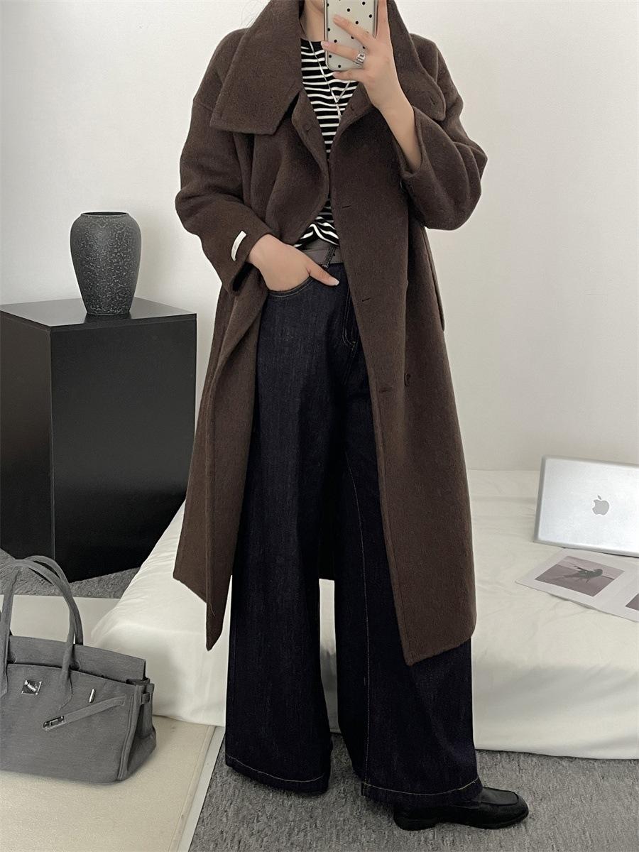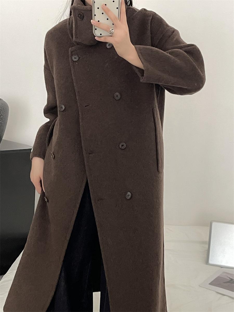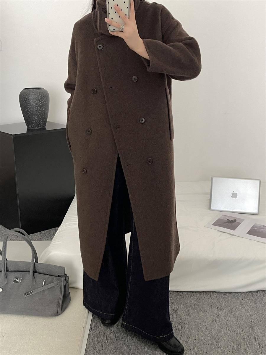 Abrigo de Lana Nuevo 2024 de Doble Cara Cuello Elegante Largo Suelto de Alta Gama Abrigo de Lana para Mujer para Otoño e Invierno X2379
