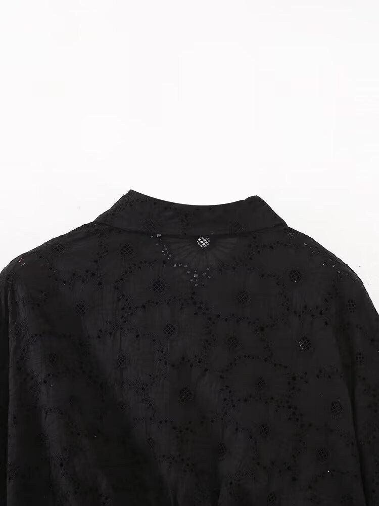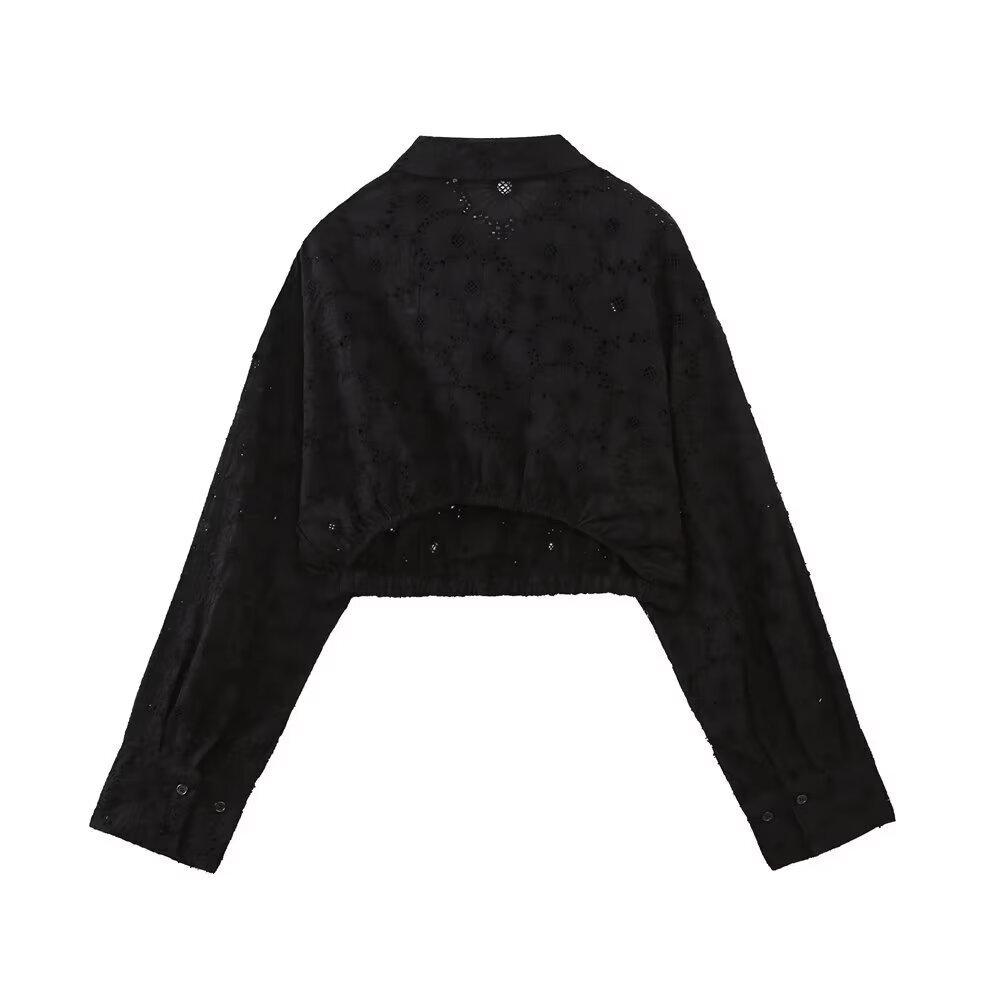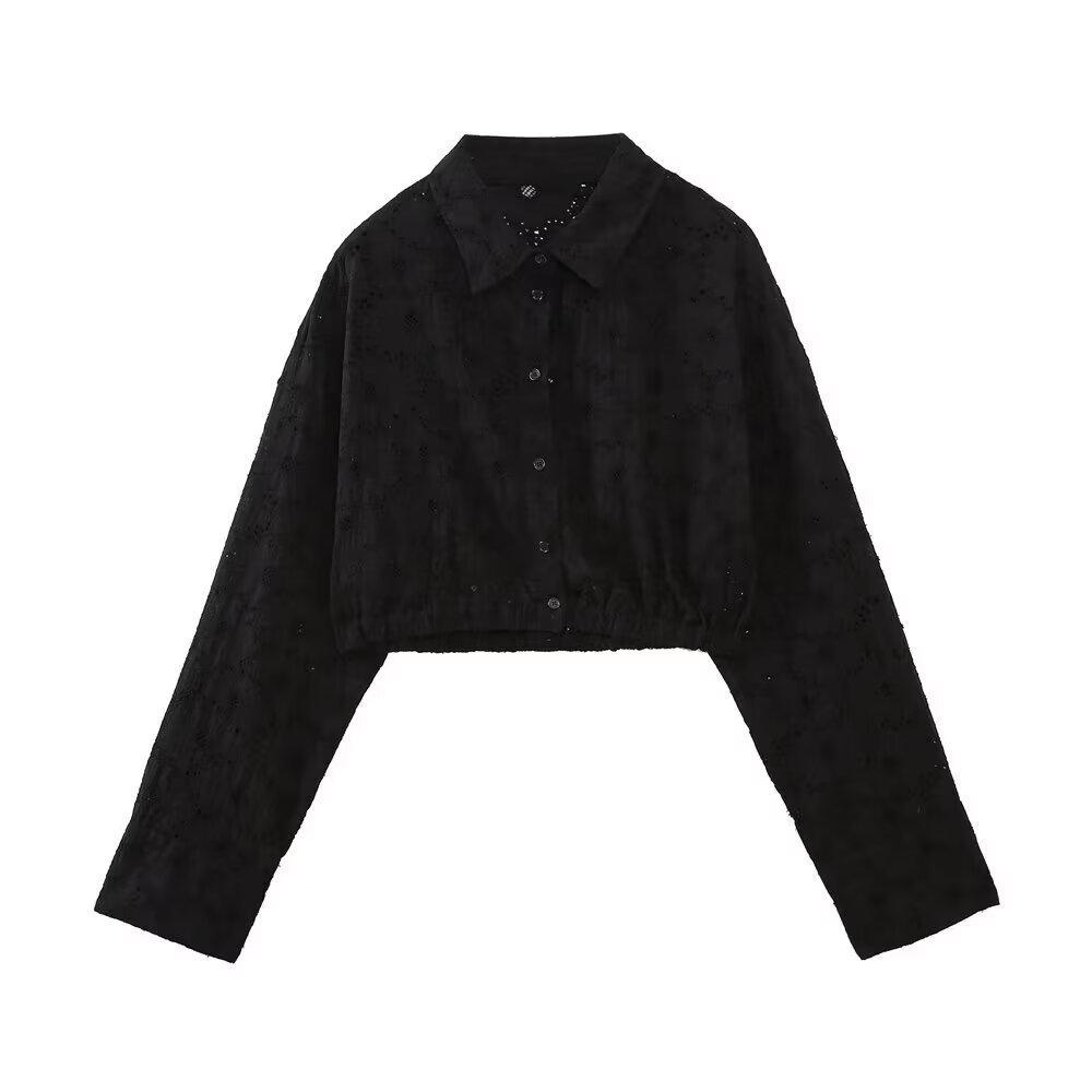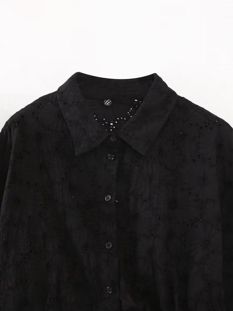 Amazon Comercio Exterior Transfronterizo Ropa Europea y Americana 2024 Verano Nuevo Moda Urbana Bordado Calado Camisa Corta
