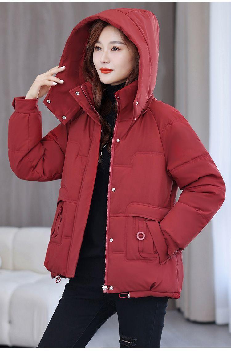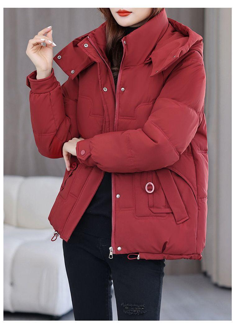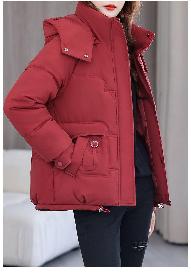 Chaqueta acolchada de algodón rojo de plumón 2024 nueva chaqueta corta acolchada de algodón de invierno suelta gruesa cálida de moda chaqueta acolchada de algodón