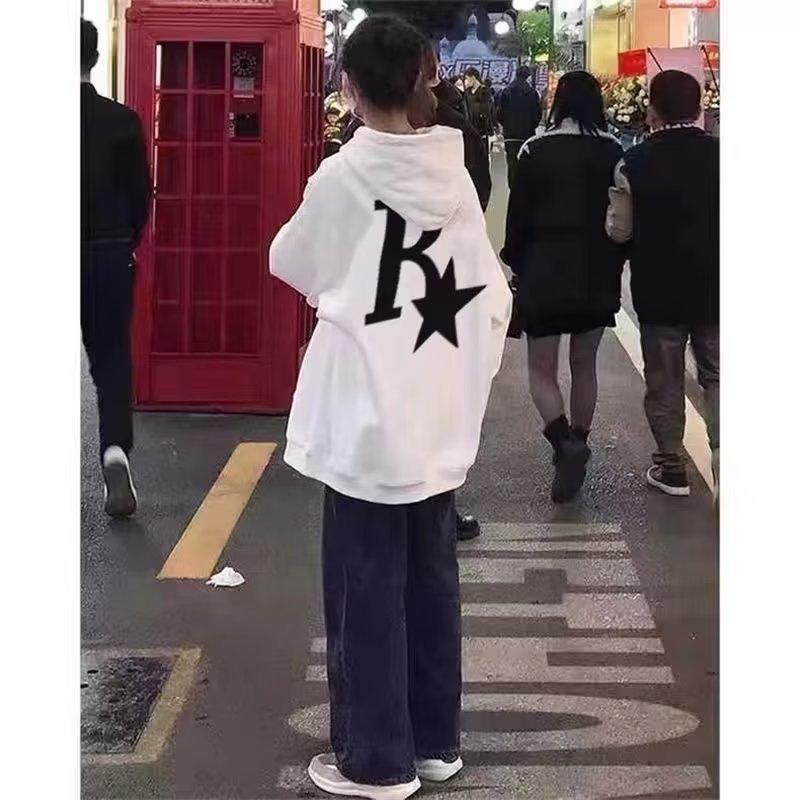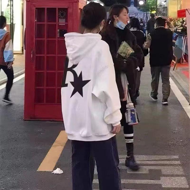 410g hooded sweatshirt plus velvet white r star