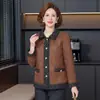 Chaqueta acolchada de algodón con estampado floral para otoño e invierno de 2024, abrigo retro holgado y cálido con cuello redondo y acolchado de algodón para mujer