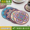 Almohadilla aislante de silicona redonda gruesa con patrón retro exótico, resistente a altas temperaturas, aislante térmico, antiescaldaduras, mantel individual, posavasos para platos y cuencos