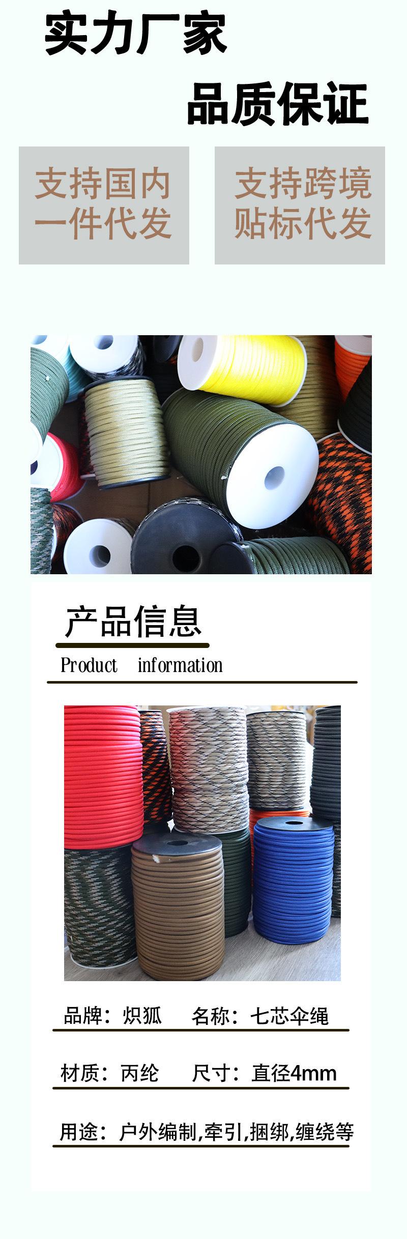Paracord de 7 núcleos Cuerda de tracción multifuncional para montañismo Paracaidista para exteriores Eje de escape montado Paracord Polipropileno Cuerda de mano Cuerda trenzada