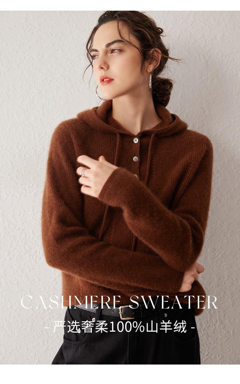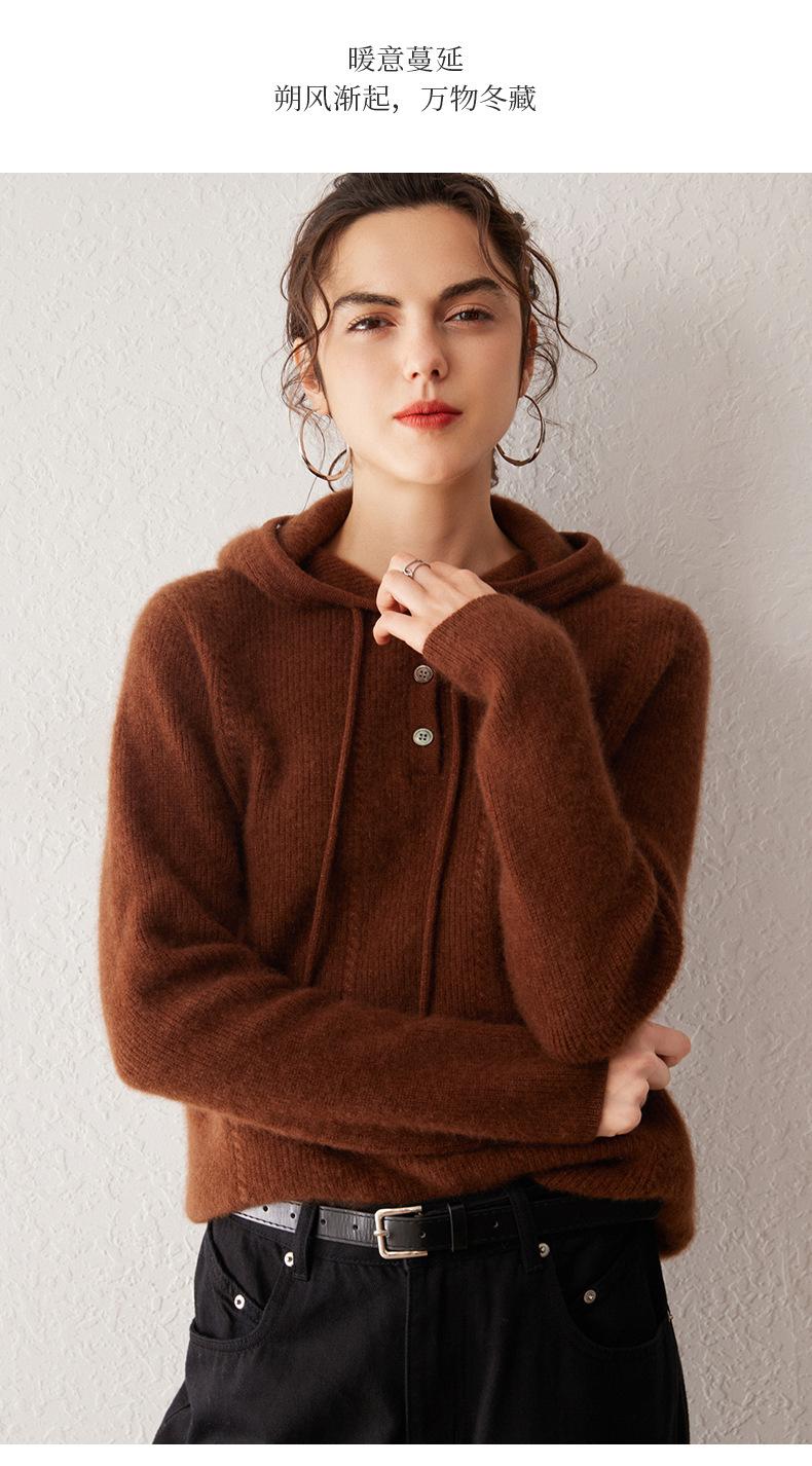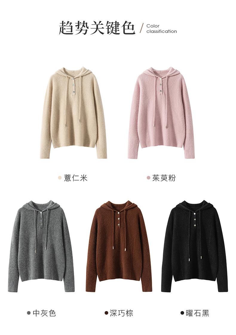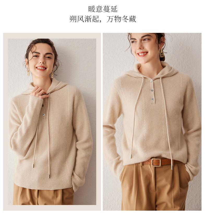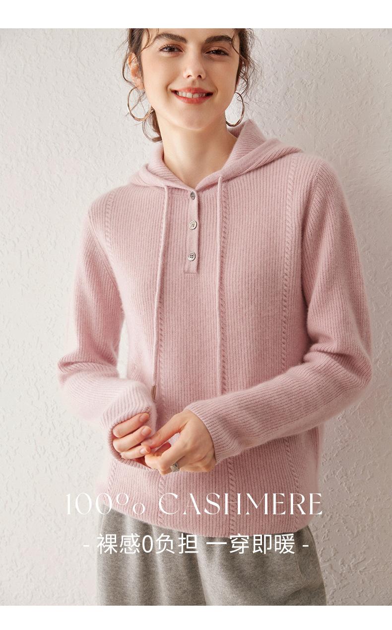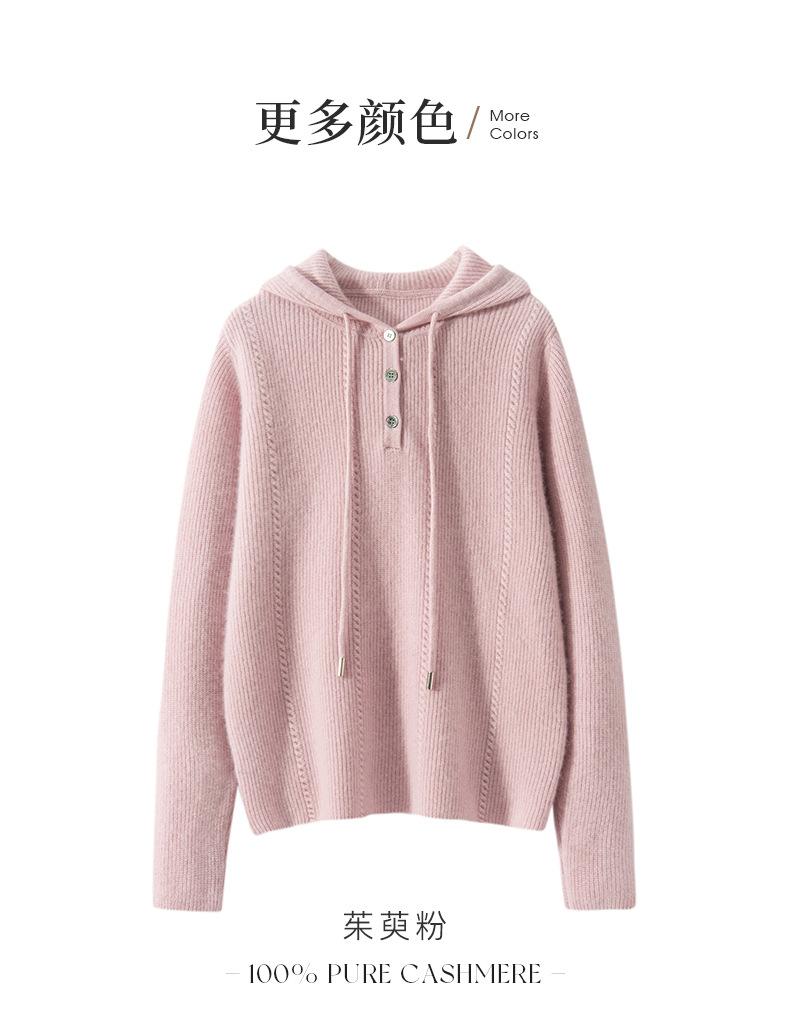 Compra Suéter de cachemira para mujer, otoño e invierno 2024, camisa básica de color liso, estilo coreano, suéter holgado y adelgazante con capucha. al por mayor en Joom.pro