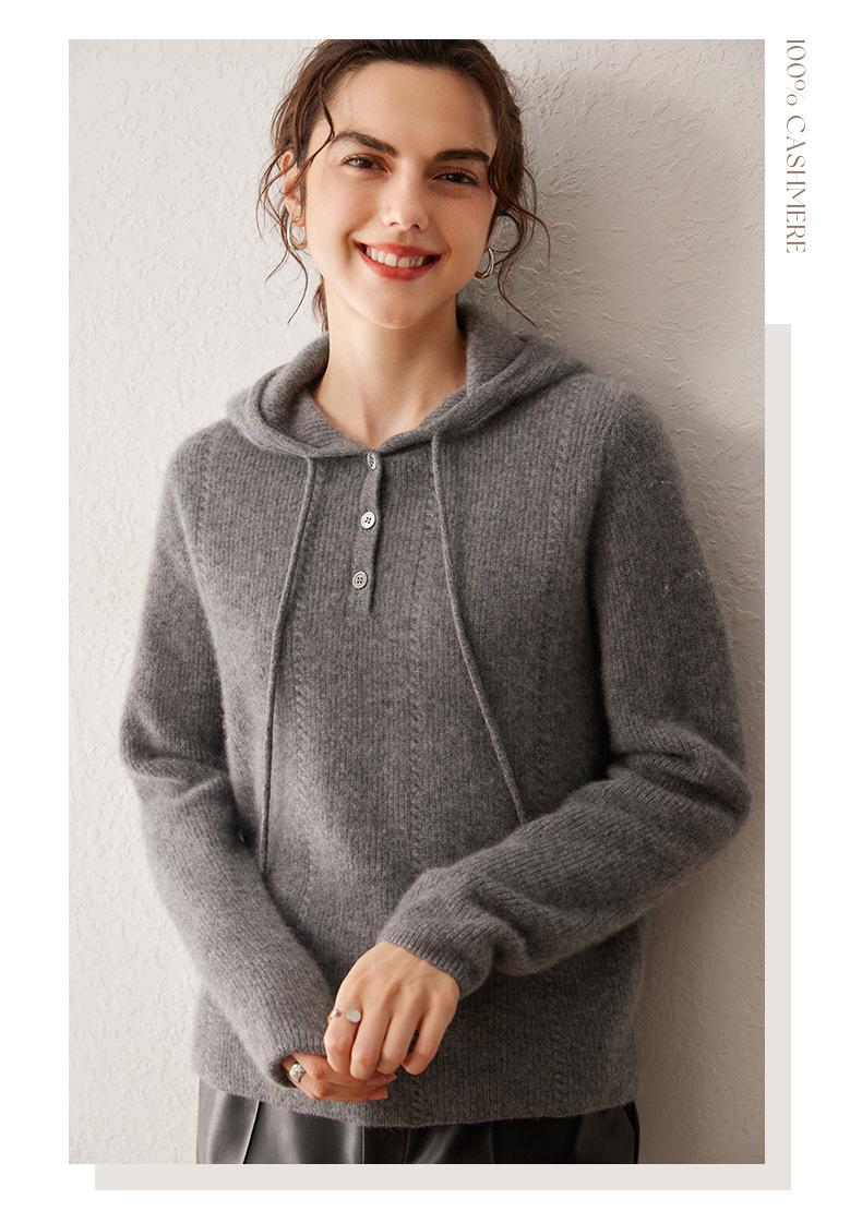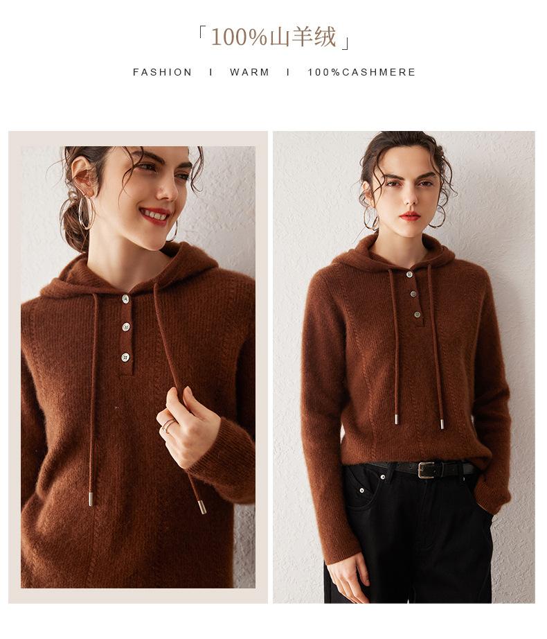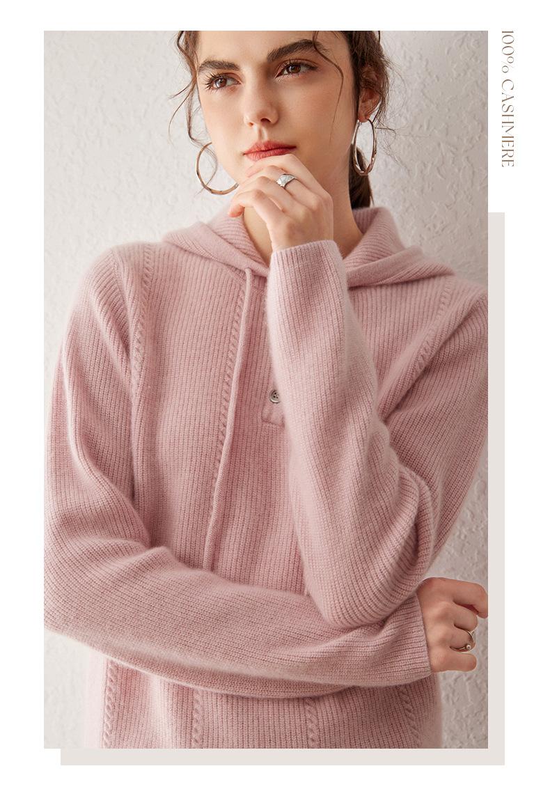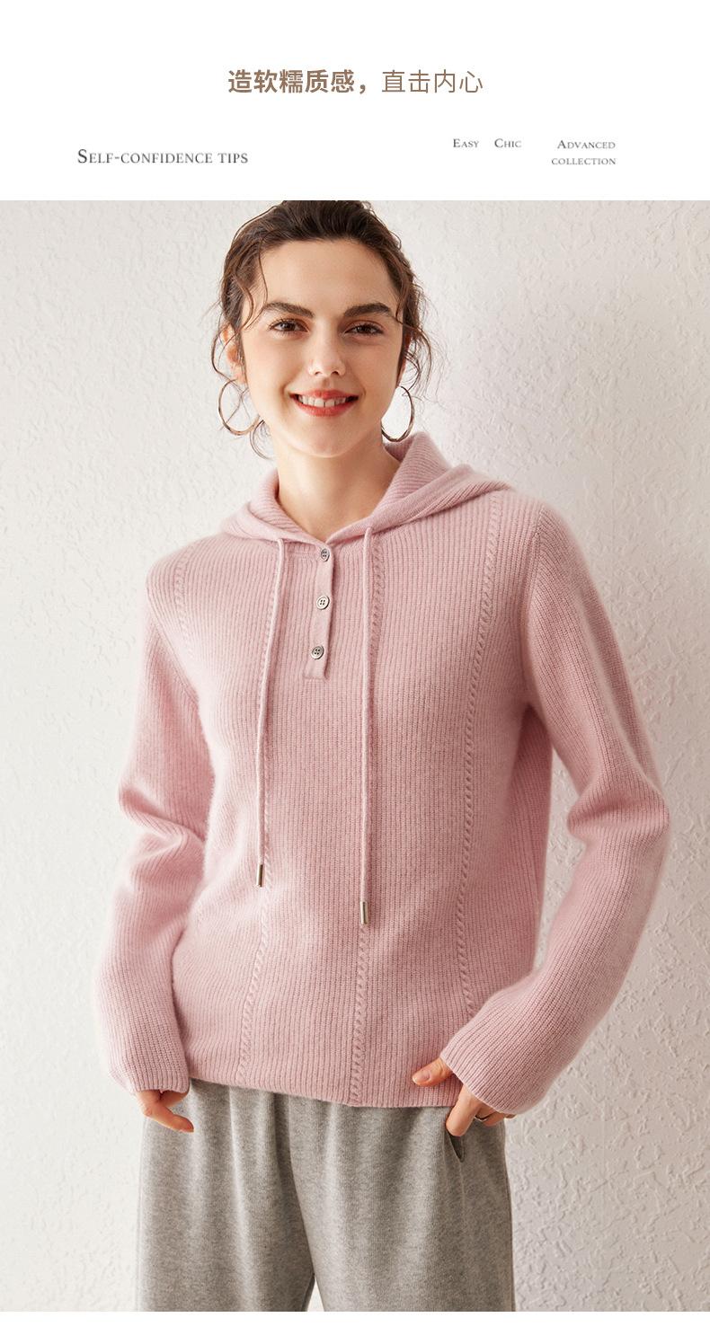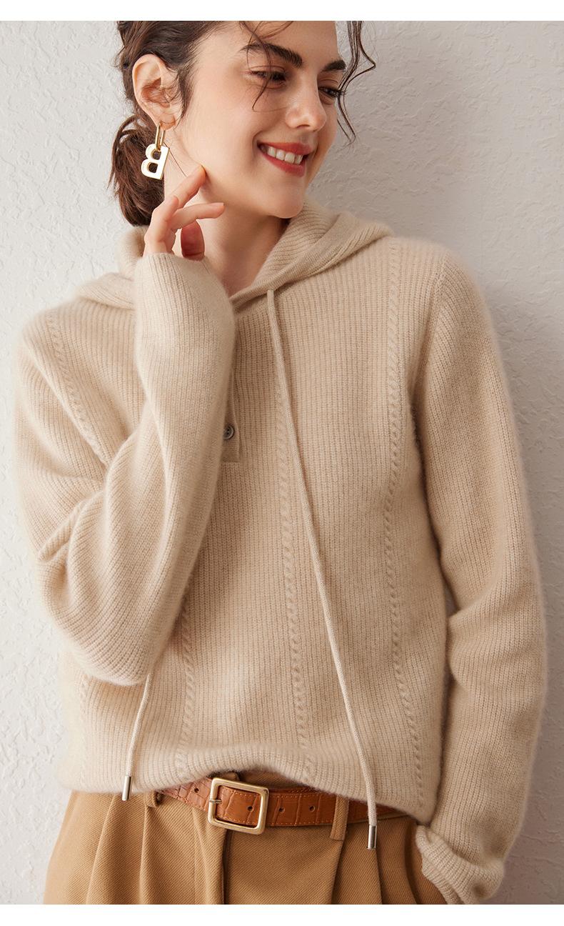 Compra Suéter de cachemira para mujer, otoño e invierno 2024, camisa básica de color liso, estilo coreano, suéter holgado y adelgazante con capucha. al por mayor en Joom.pro