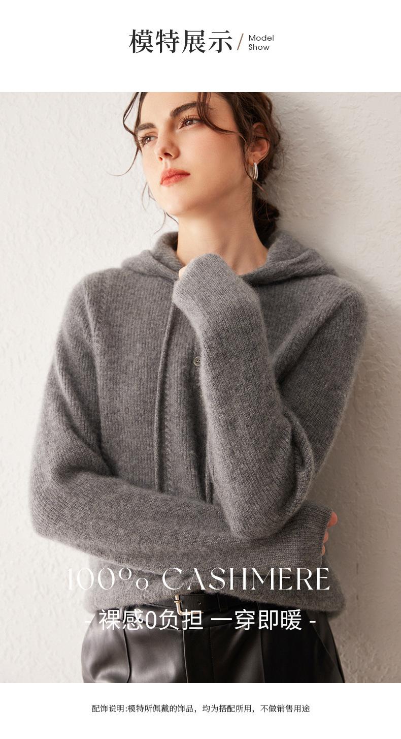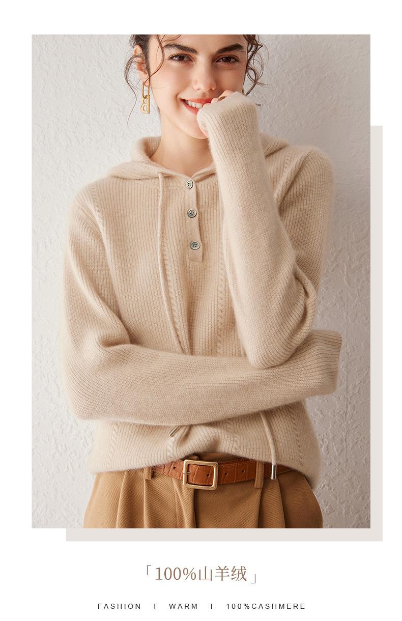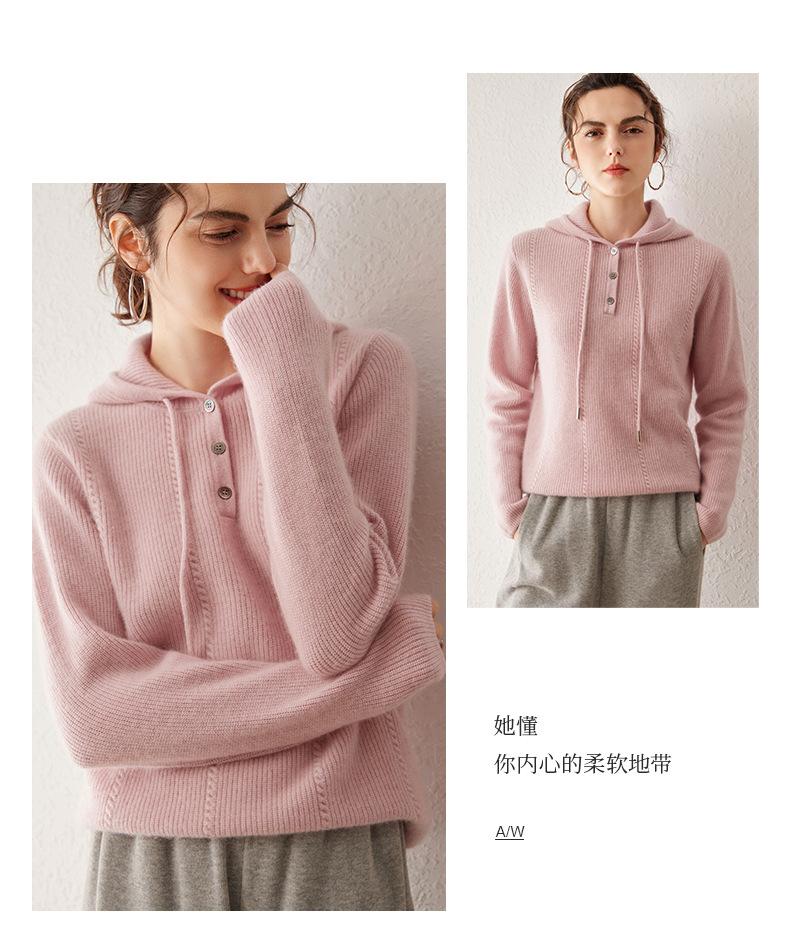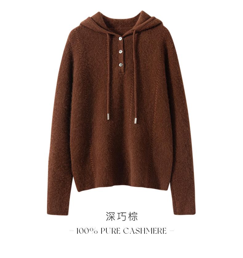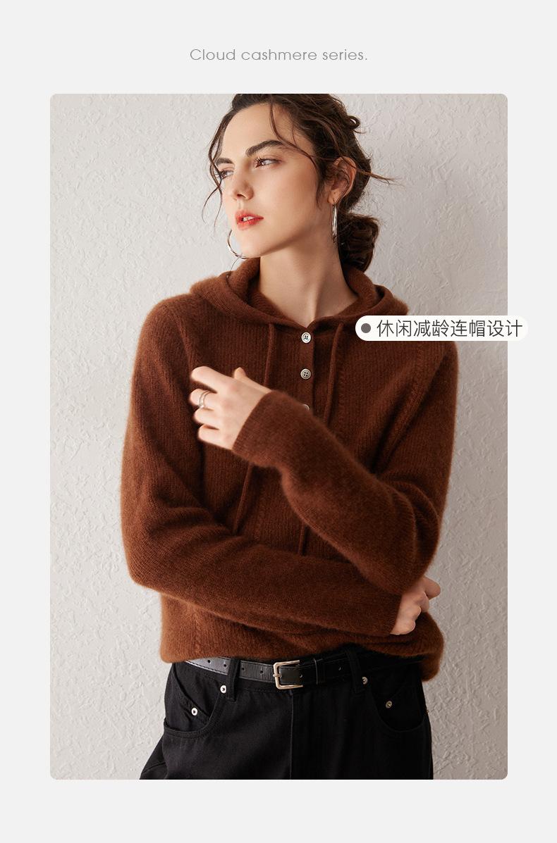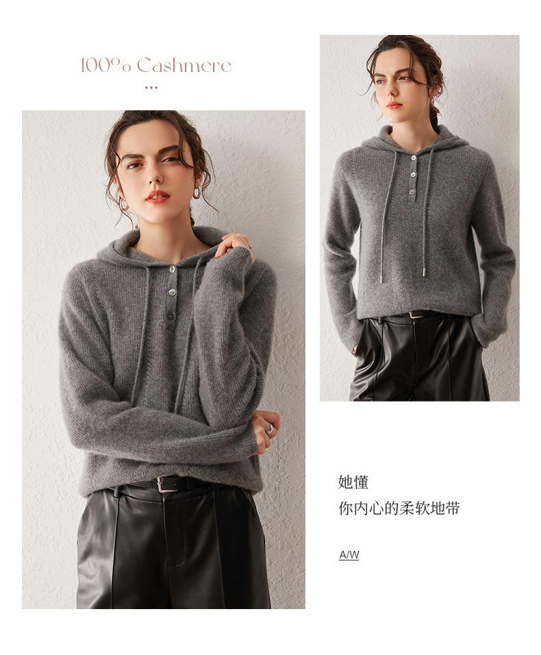 Compra Suéter de cachemira para mujer, otoño e invierno 2024, camisa básica de color liso, estilo coreano, suéter holgado y adelgazante con capucha. al por mayor en Joom.pro