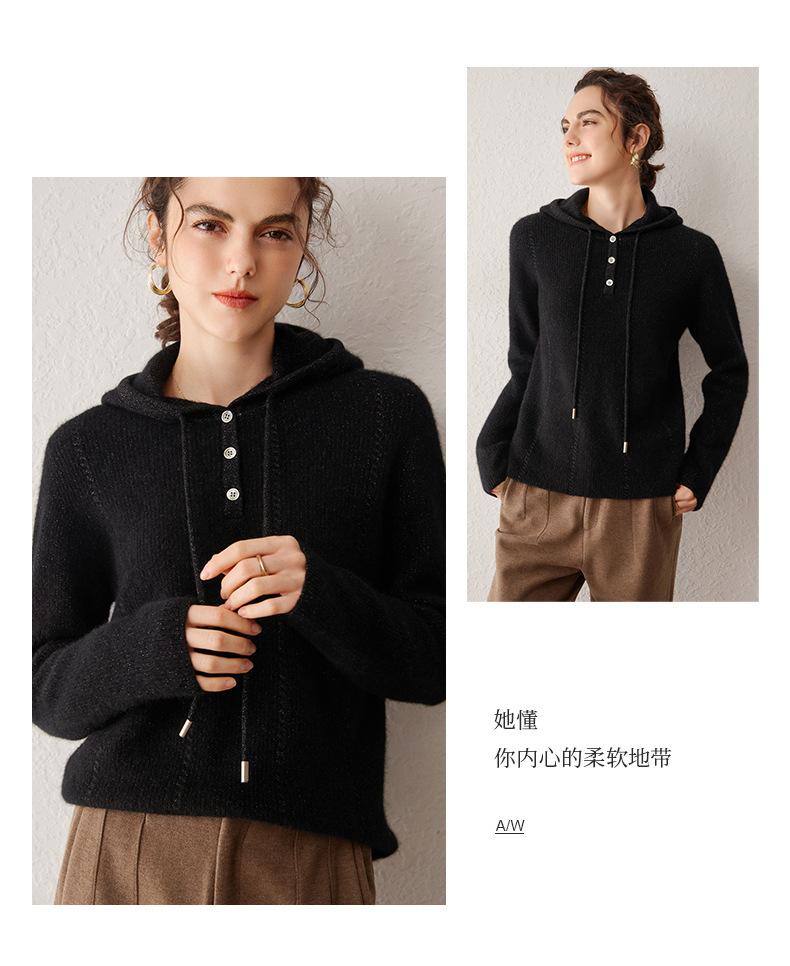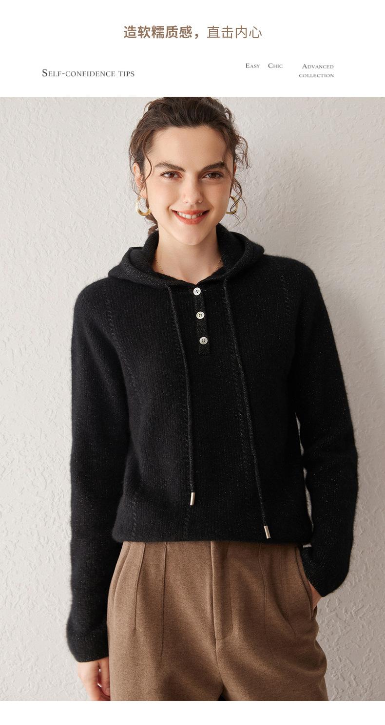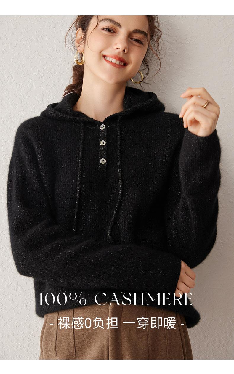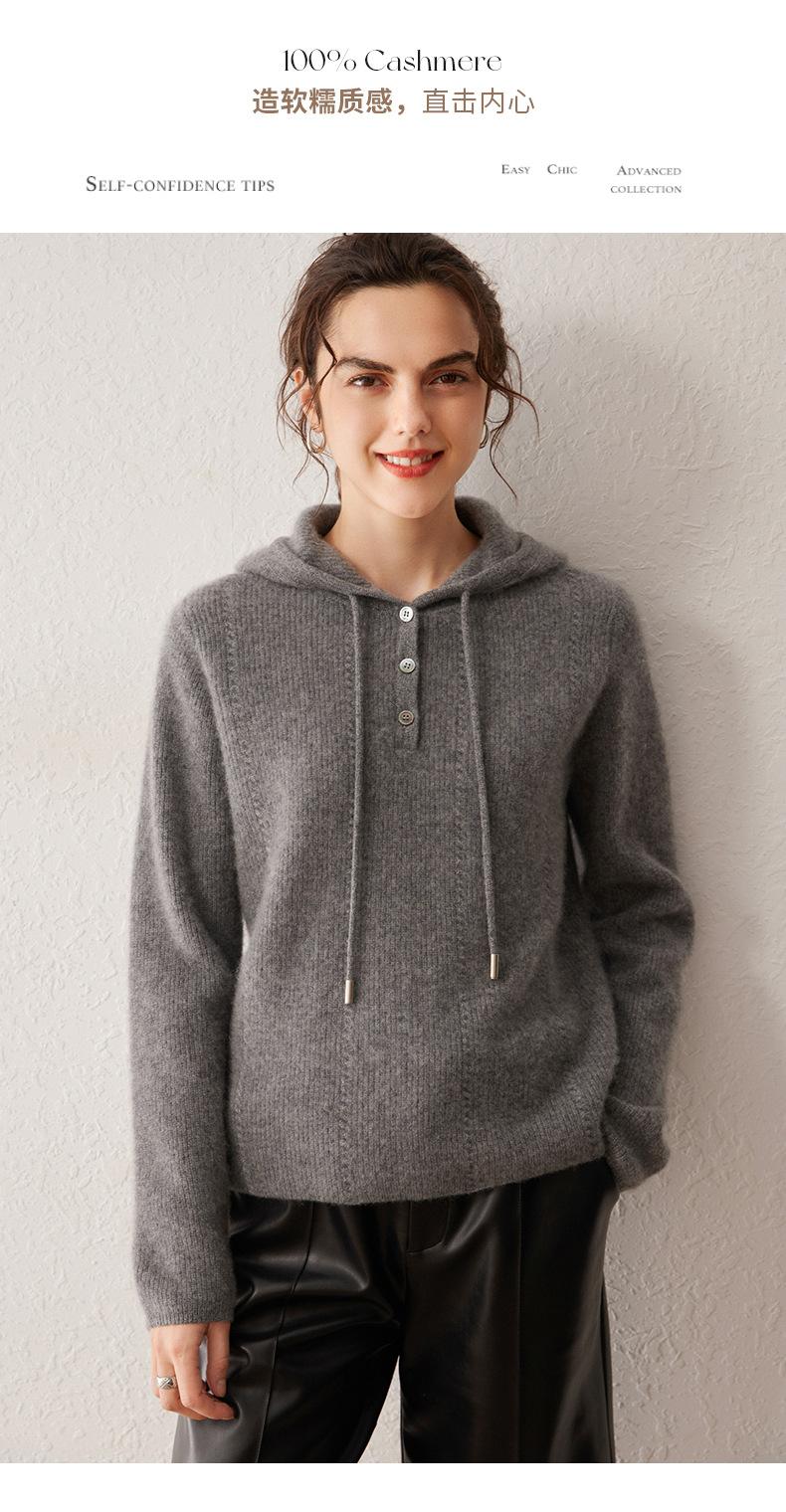 Compra Suéter de cachemira para mujer, otoño e invierno 2024, camisa básica de color liso, estilo coreano, suéter holgado y adelgazante con capucha. al por mayor en Joom.pro