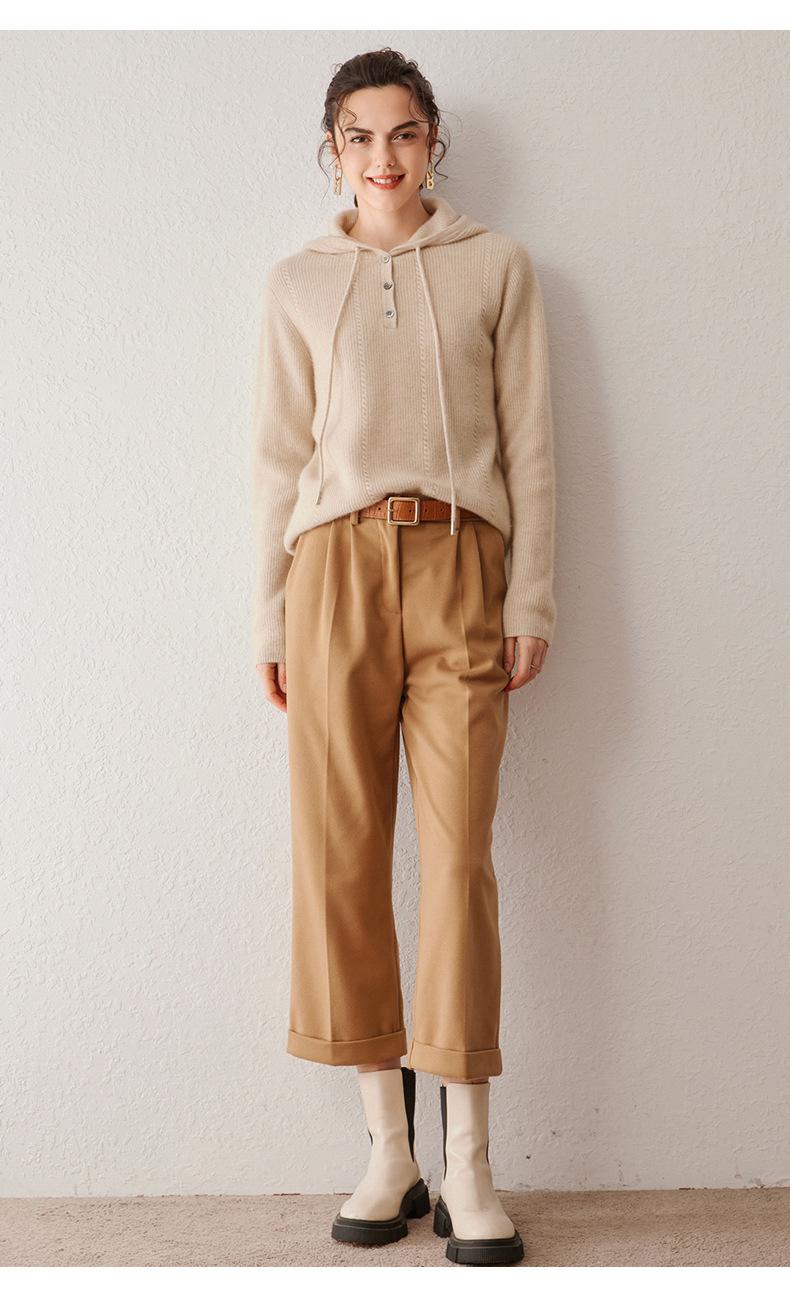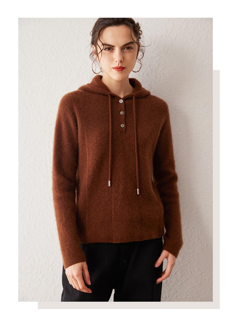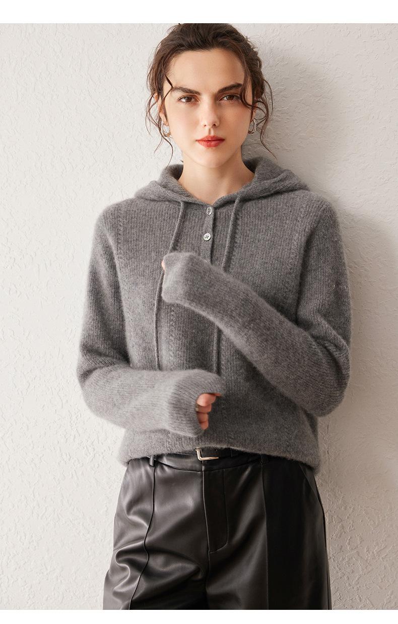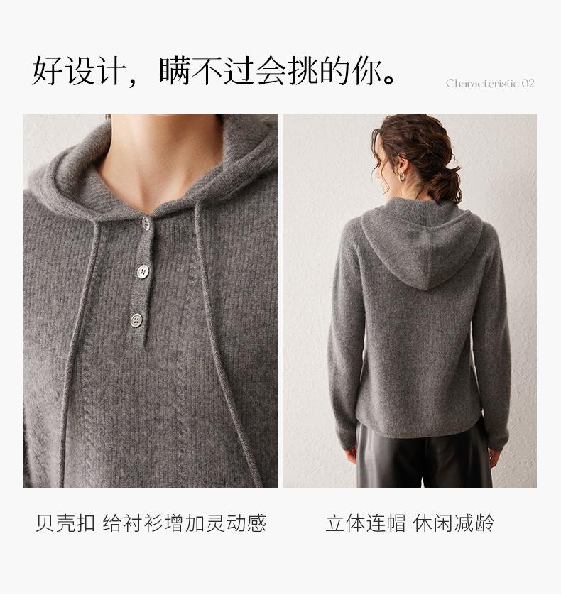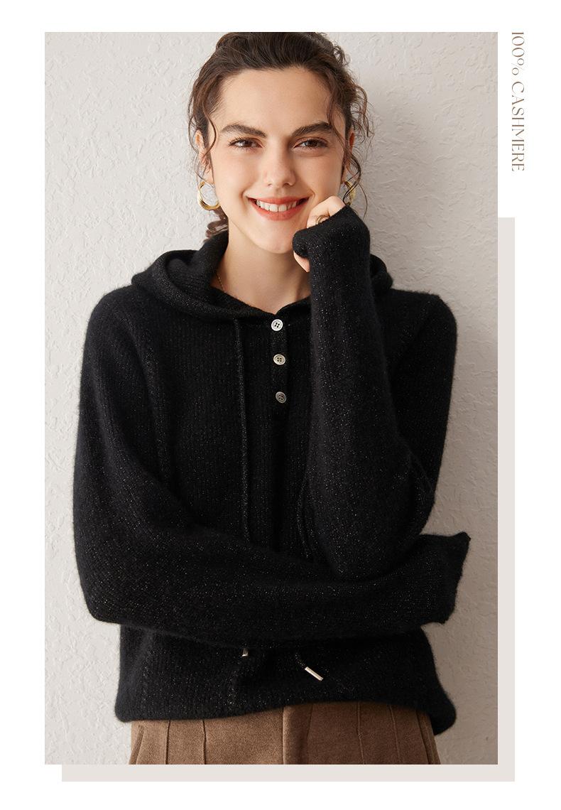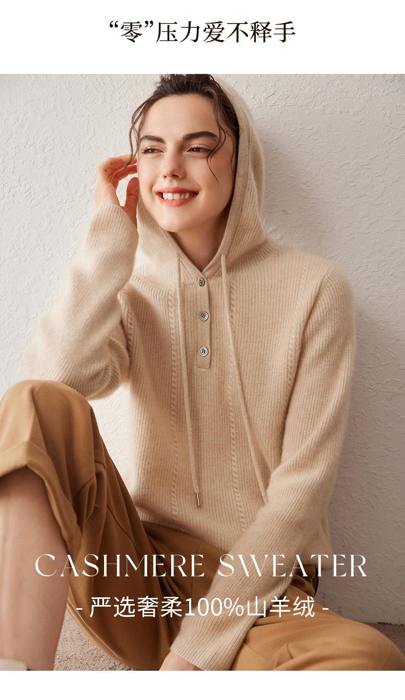 Compra Suéter de cachemira para mujer, otoño e invierno 2024, camisa básica de color liso, estilo coreano, suéter holgado y adelgazante con capucha. al por mayor en Joom.pro