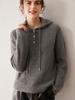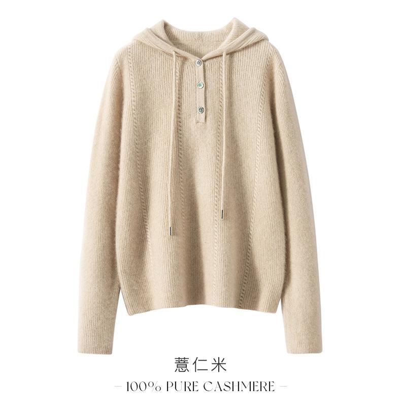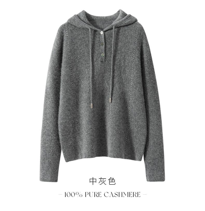 Suéter de cachemira para mujer, otoño e invierno 2024, camisa básica de color liso, estilo coreano, suéter holgado y adelgazante con capucha.
