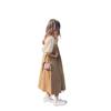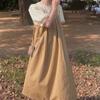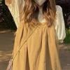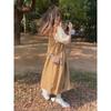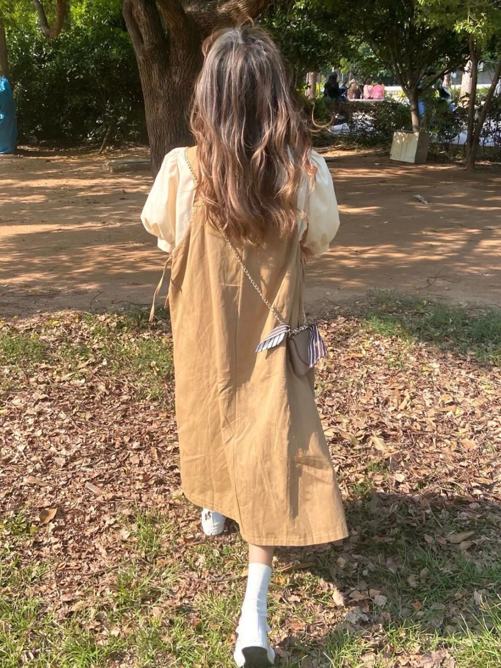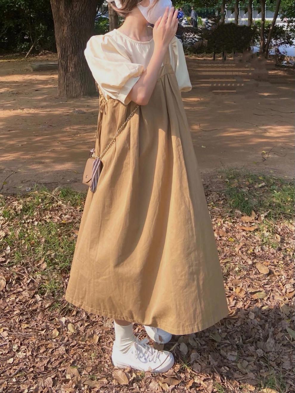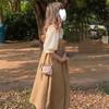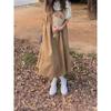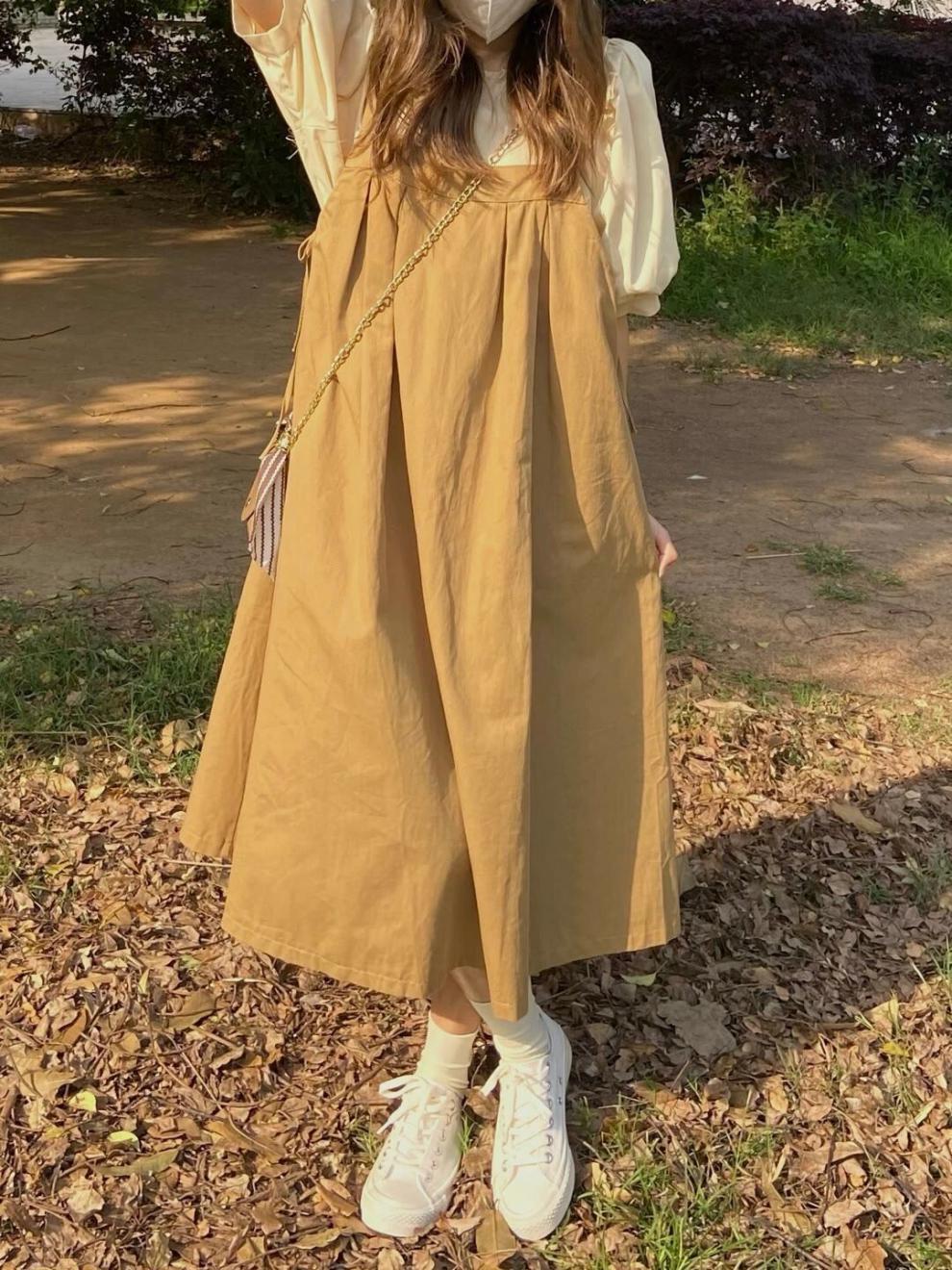 [set] khaki skirt + mi xing top, Khaki suspender skirt single piece, Rice apricot top single piece