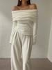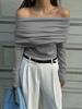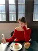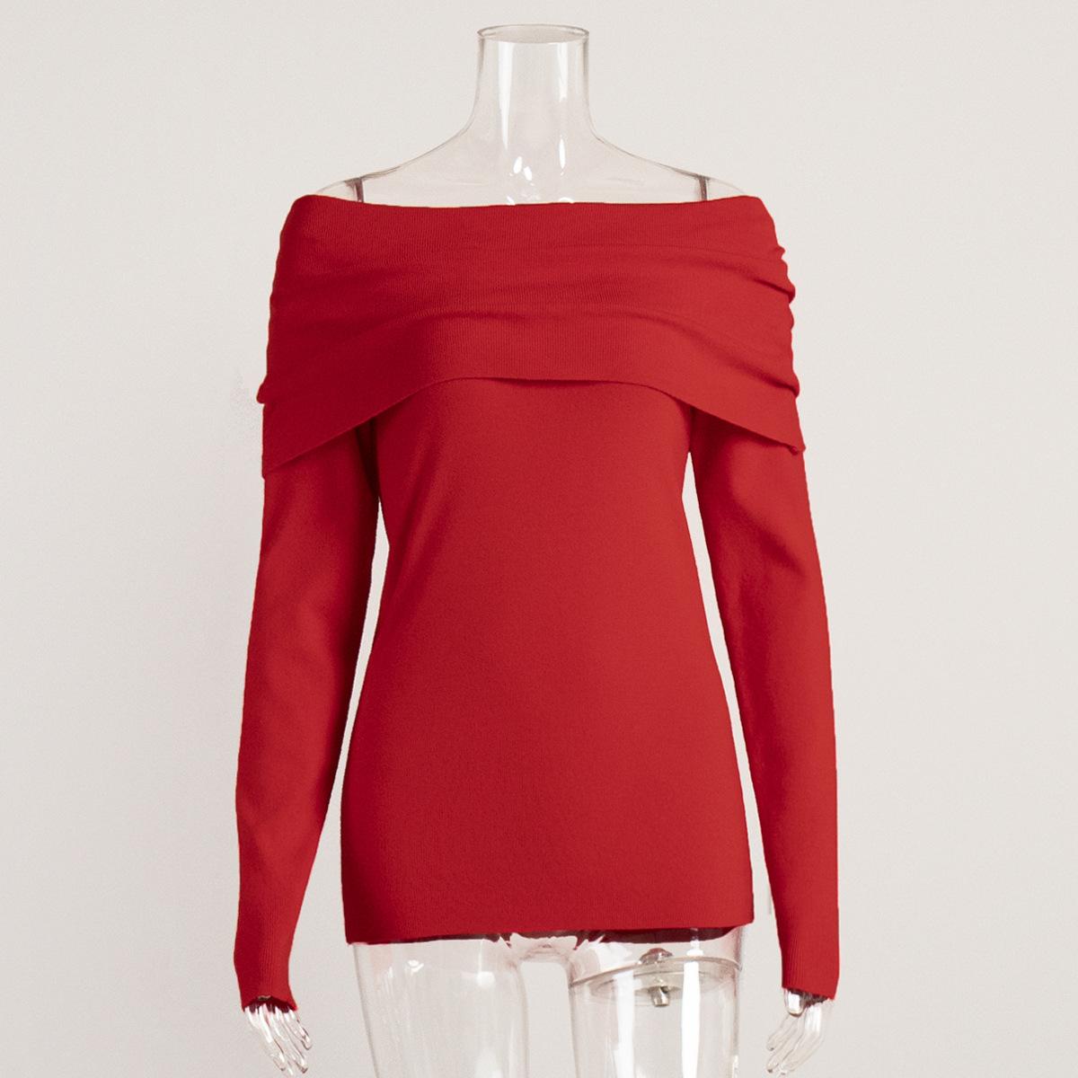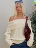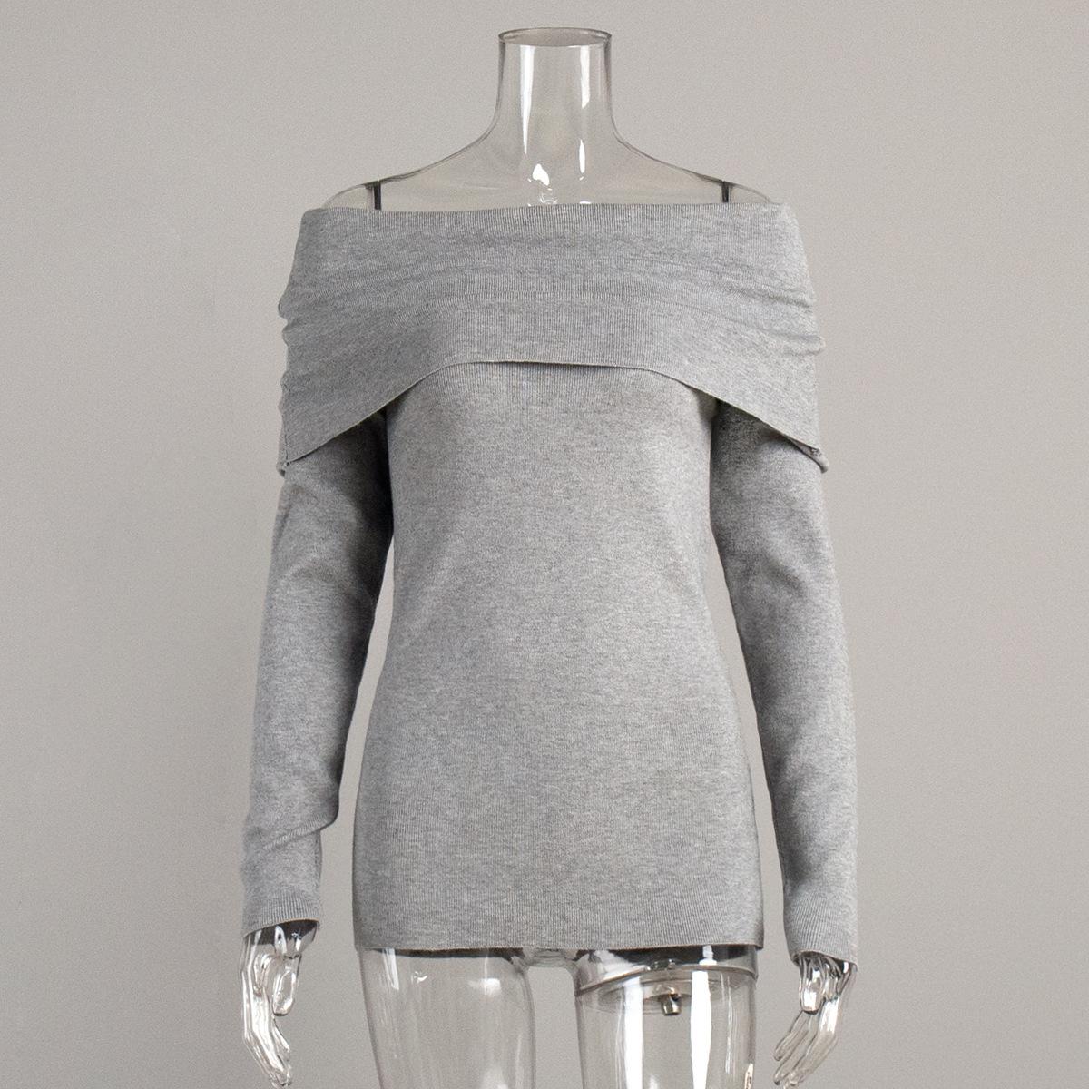 Transfronterizo 2025 Nuevo Estilo Europeo y Americano de Un Hombro Elegante Diseño Descubierto Ajuste Adelgazante Suéter Tejido Envolvente de Pecho para Mujer