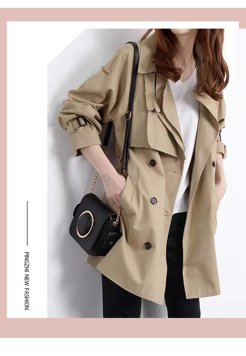 Elegante Gabardina de Largo Medio con Doble Botonadura 2025 Primavera y Otoño Nueva Ropa de Mujer Ajustada Otoño Abrigo de Alta Gama