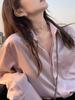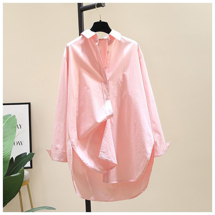 Camisa fina de manga larga para mujer, estilo occidental, nueva, estilo coreano, diseño holgado, estilo nicho, camisa de longitud media