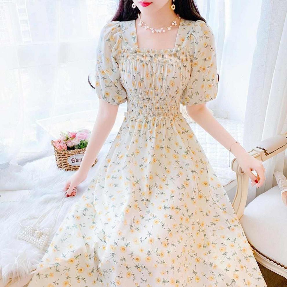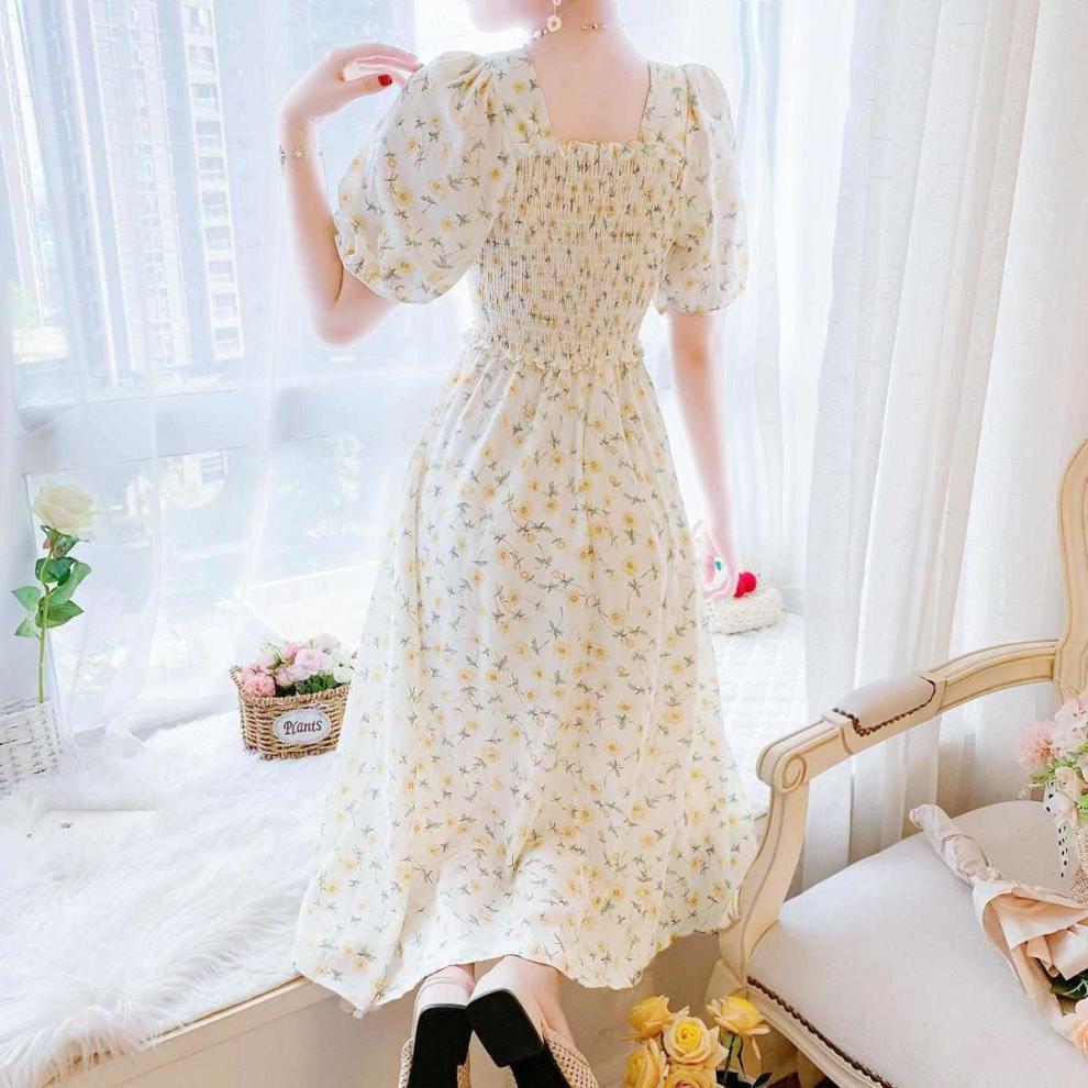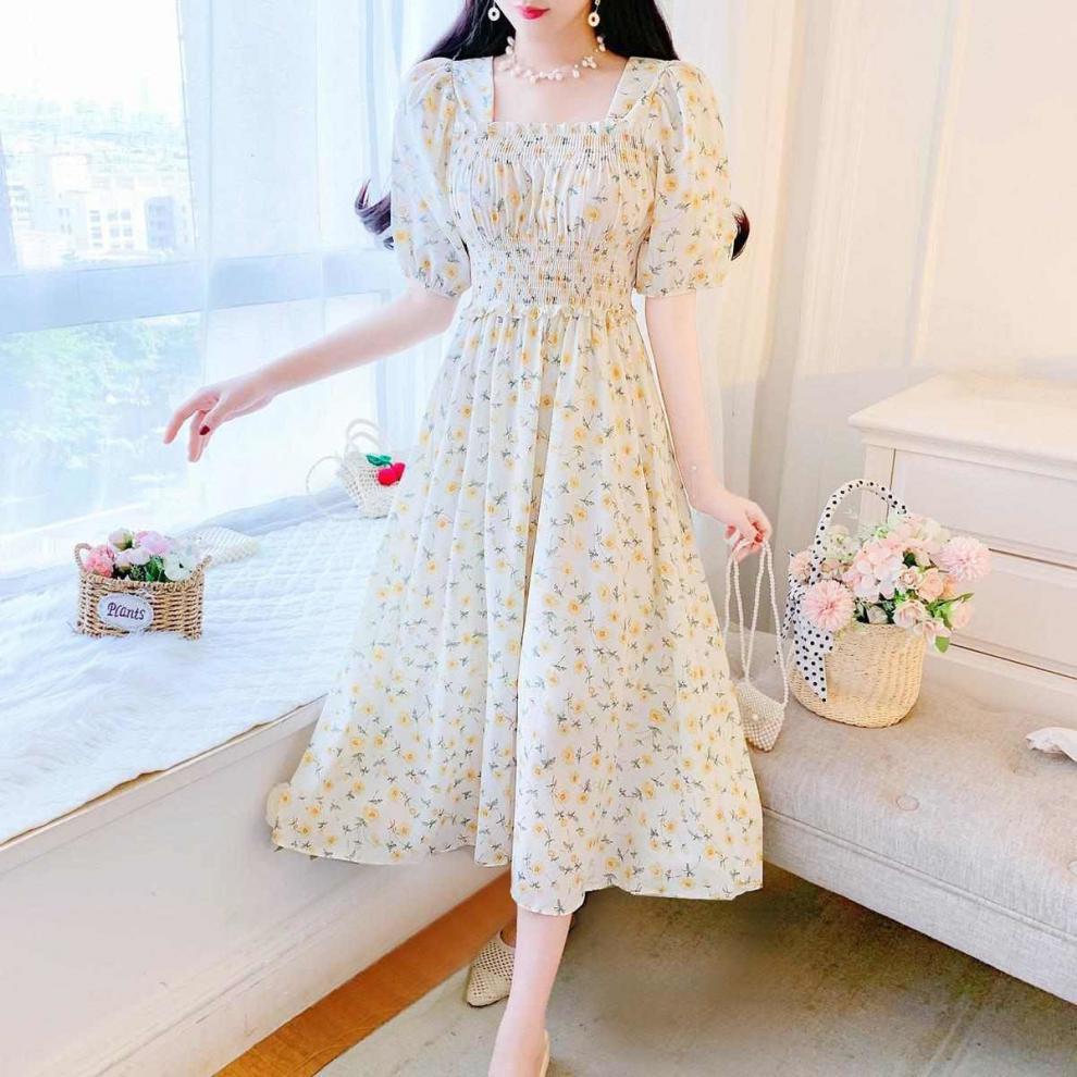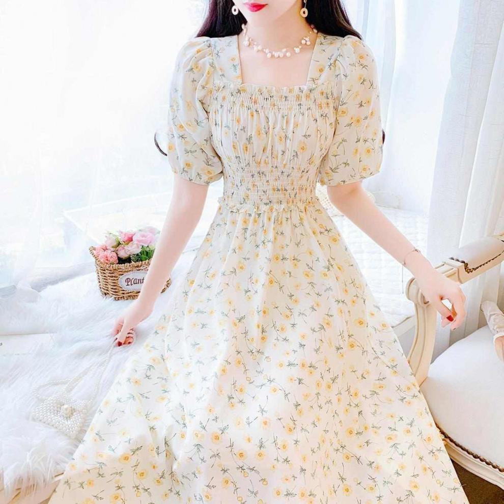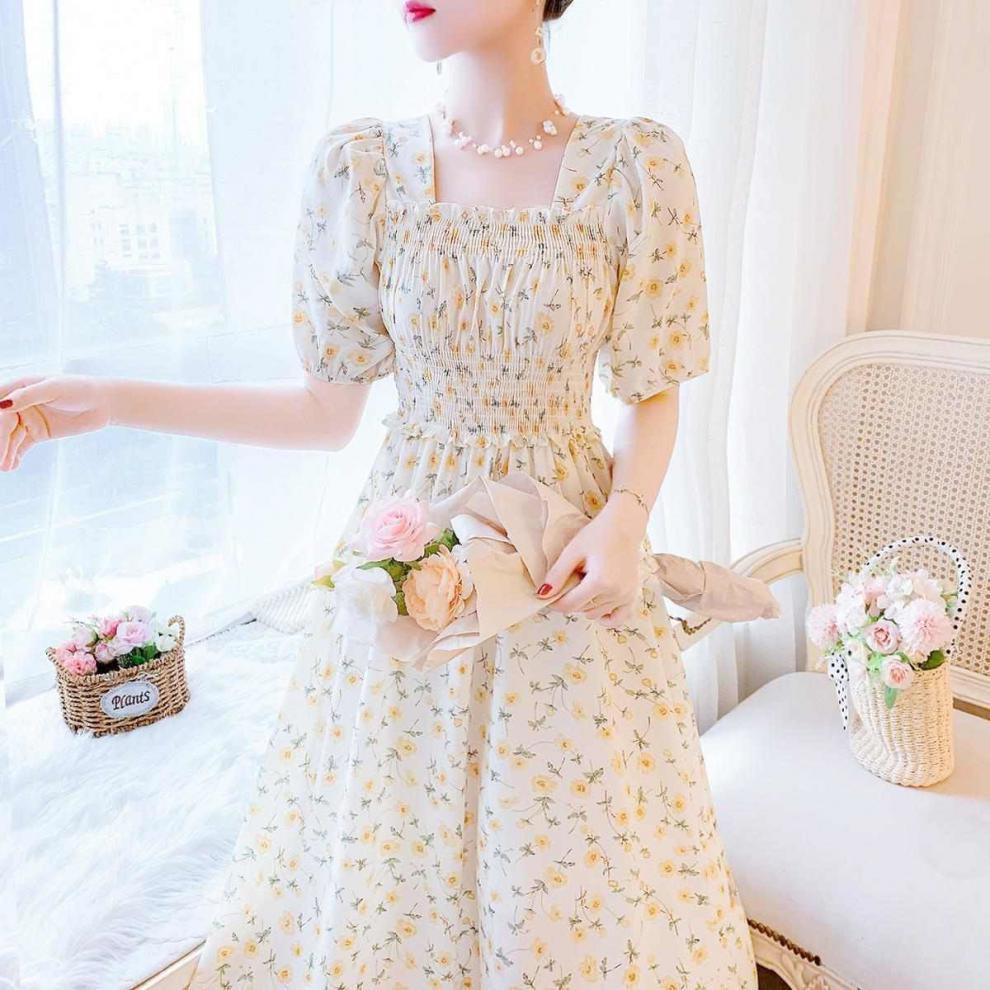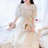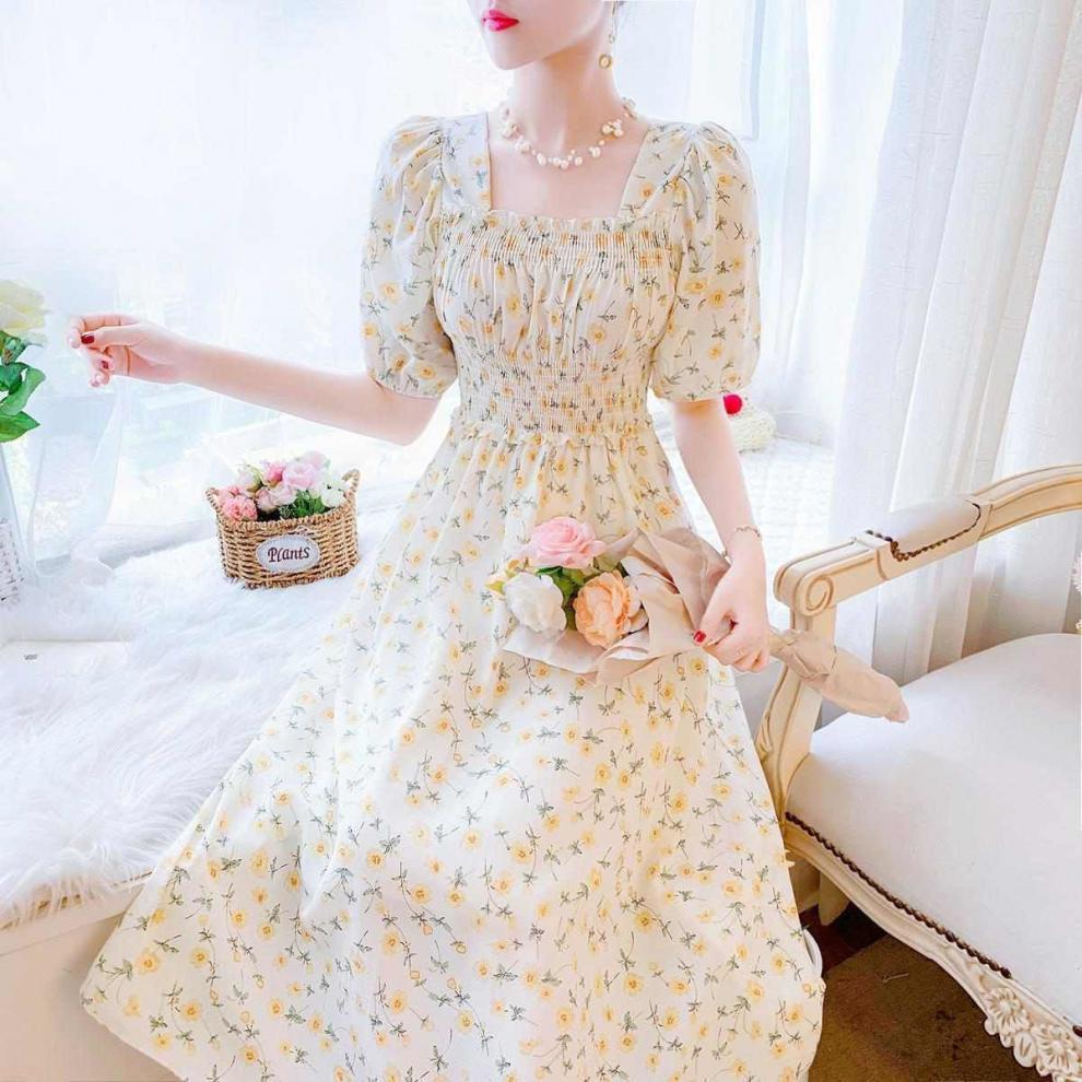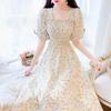 Vestido francés de verano para mujer, falda de hada elegante con cuello cuadrado y corte A, talla grande, 150 kg de grasa, nueva