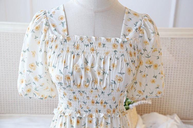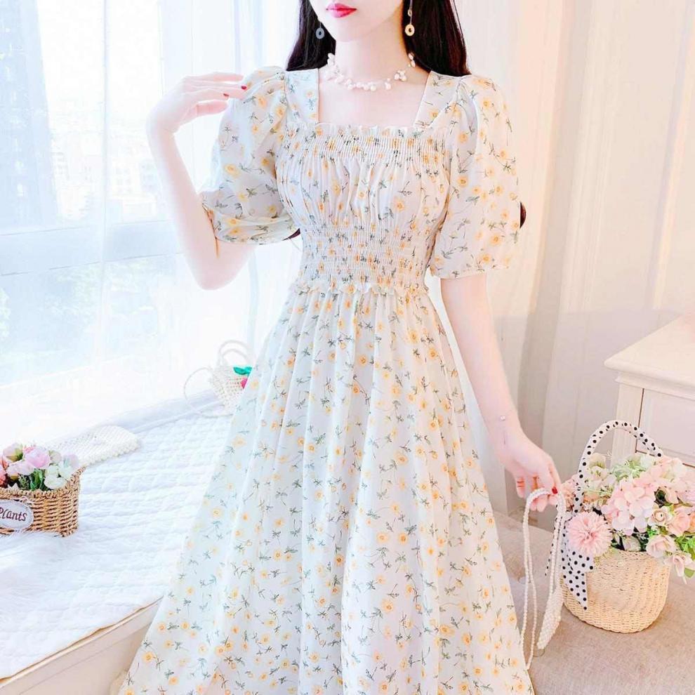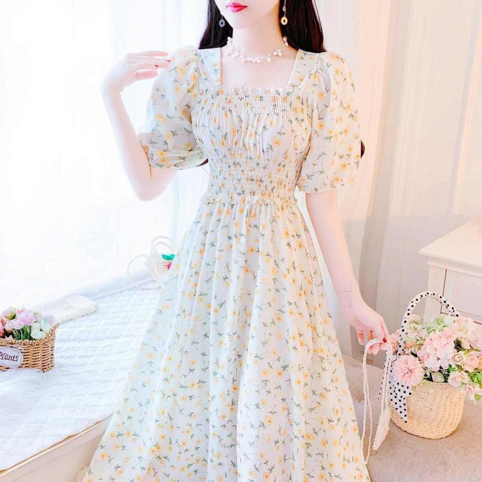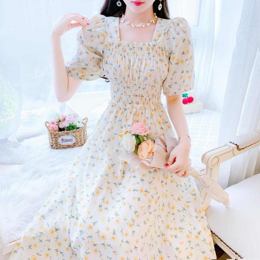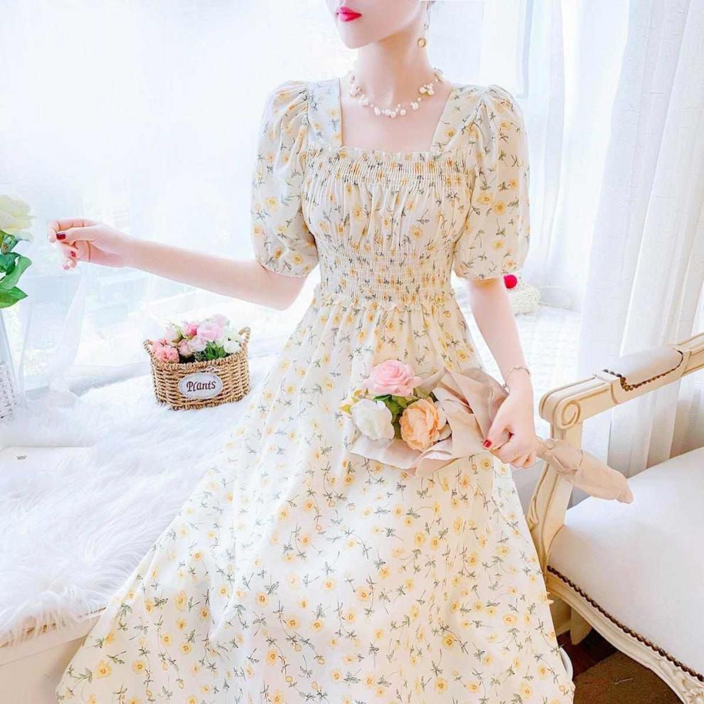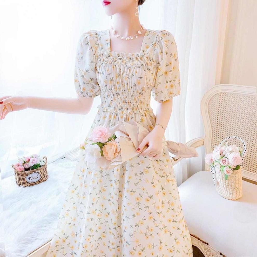 Vestido francés de verano para mujer, falda de hada elegante con cuello cuadrado y corte A, talla grande, 150 kg de grasa, nueva