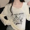 Camiseta de manga larga con estampado de estrellas de Design Sense para mujer, primavera y otoño, nueva, fina, holgada, estilo informal, combinable.