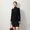 Falda de una pieza de punto con cuello redondo semialto de terciopelo cepillado de doble cara para otoño e invierno de 2024, falda de cintura media de color liso para mujer