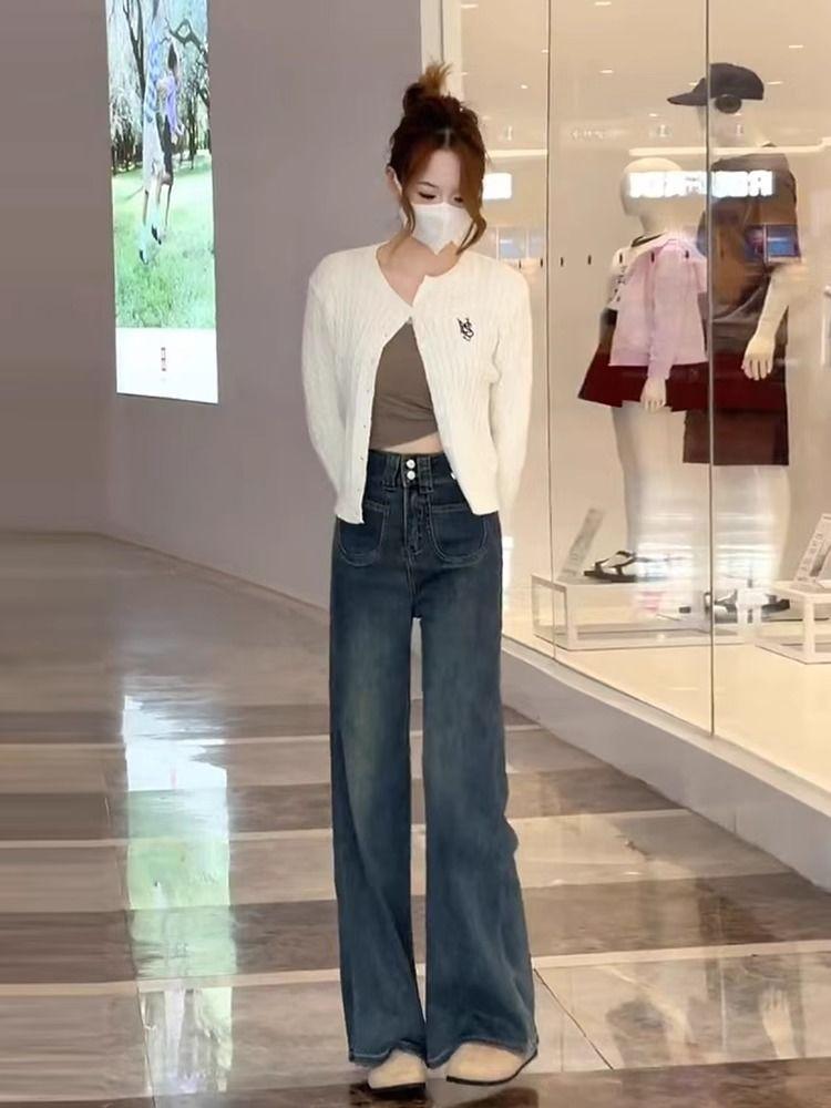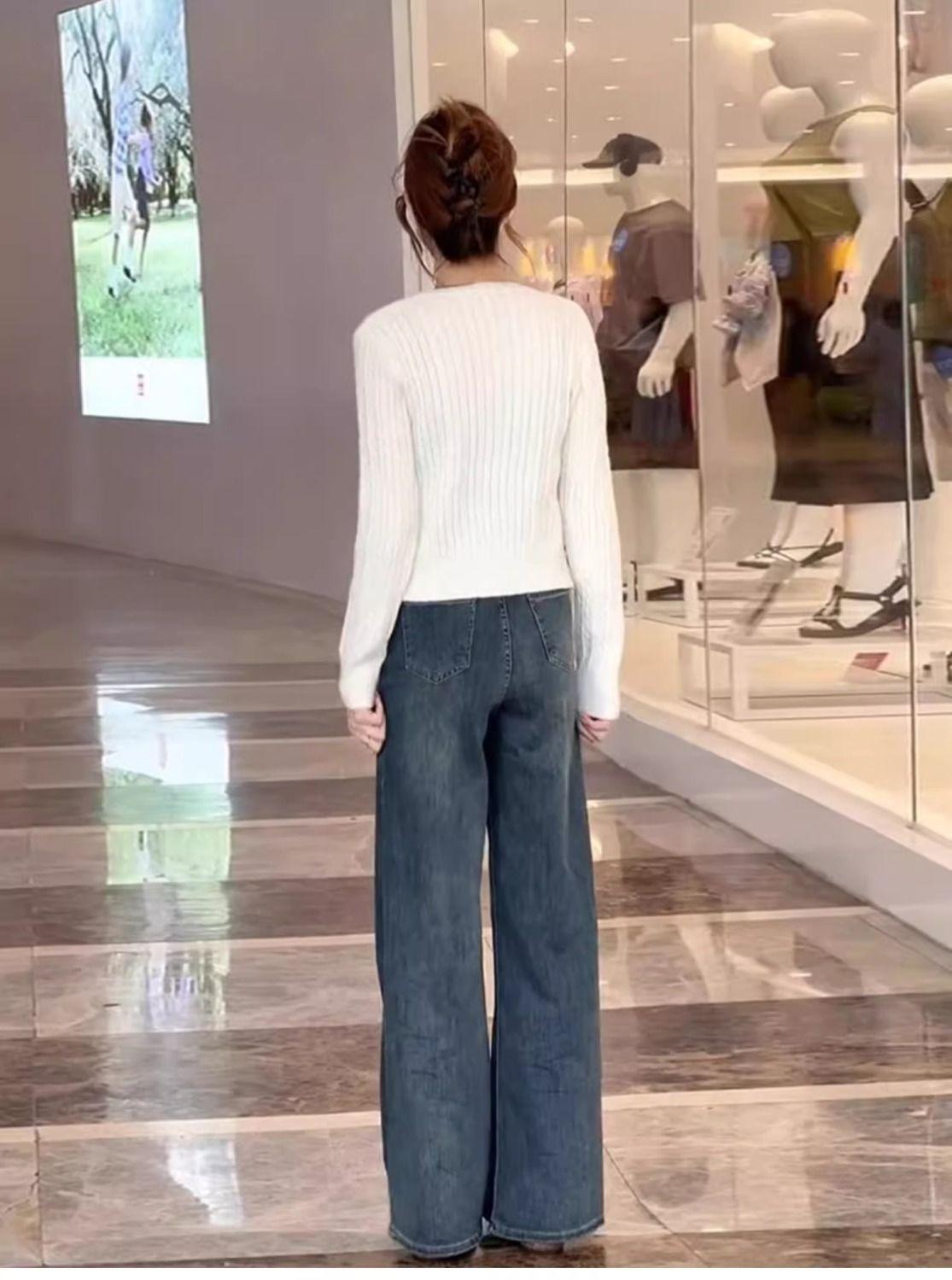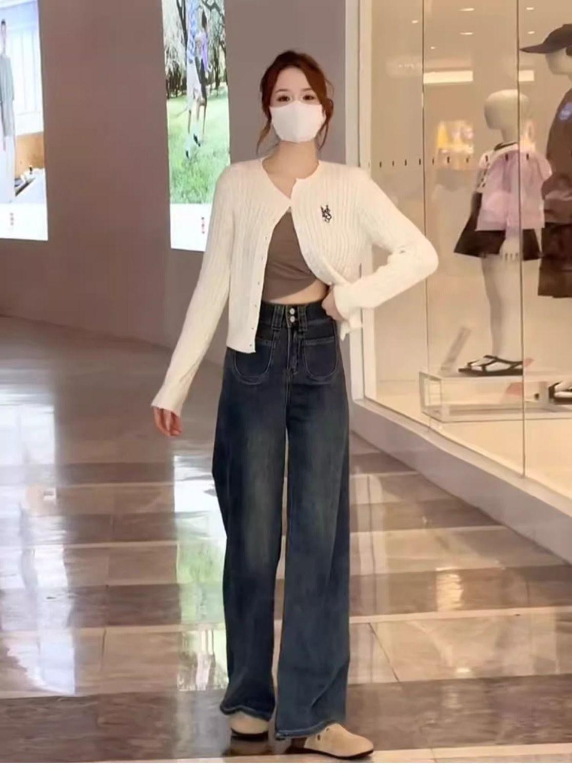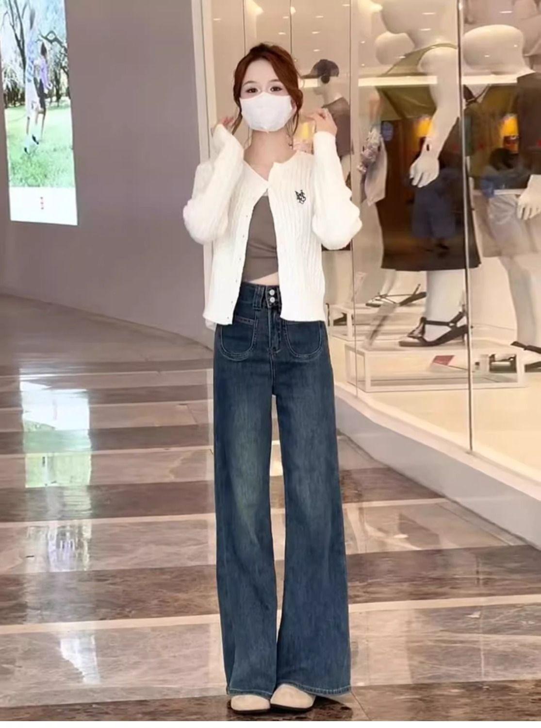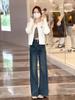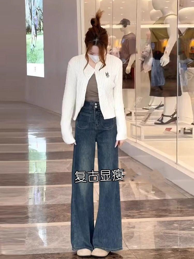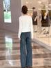 Pantalones vaqueros vintage Micro-La para mujer, otoño 2024, nuevos, con cuerpo en forma de pera, para chica gordita, talla grande, que adelgazan la cadera y cubren los pantalones rectos.