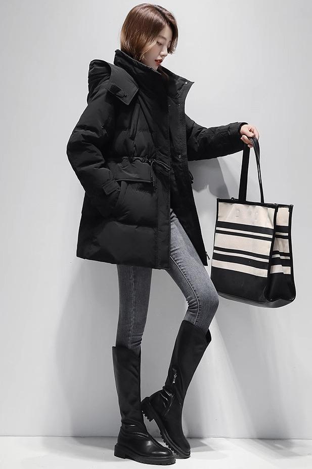Chaqueta acolchada de algodón para mujer, de longitud media, invierno 2023, nueva moda, estilo occidental, de alta gama, con cordón simple, abrigo informal ajustado