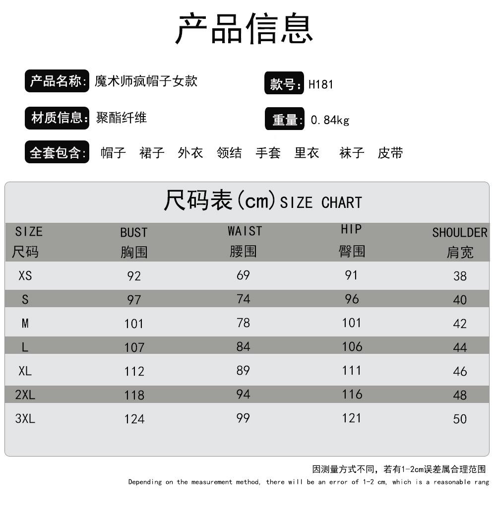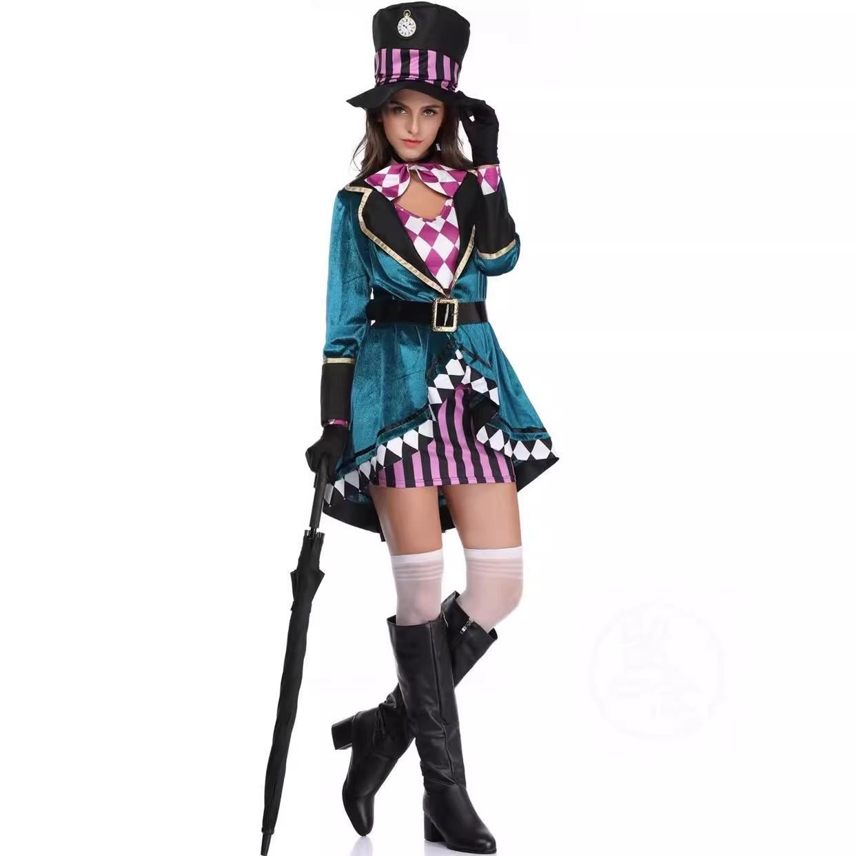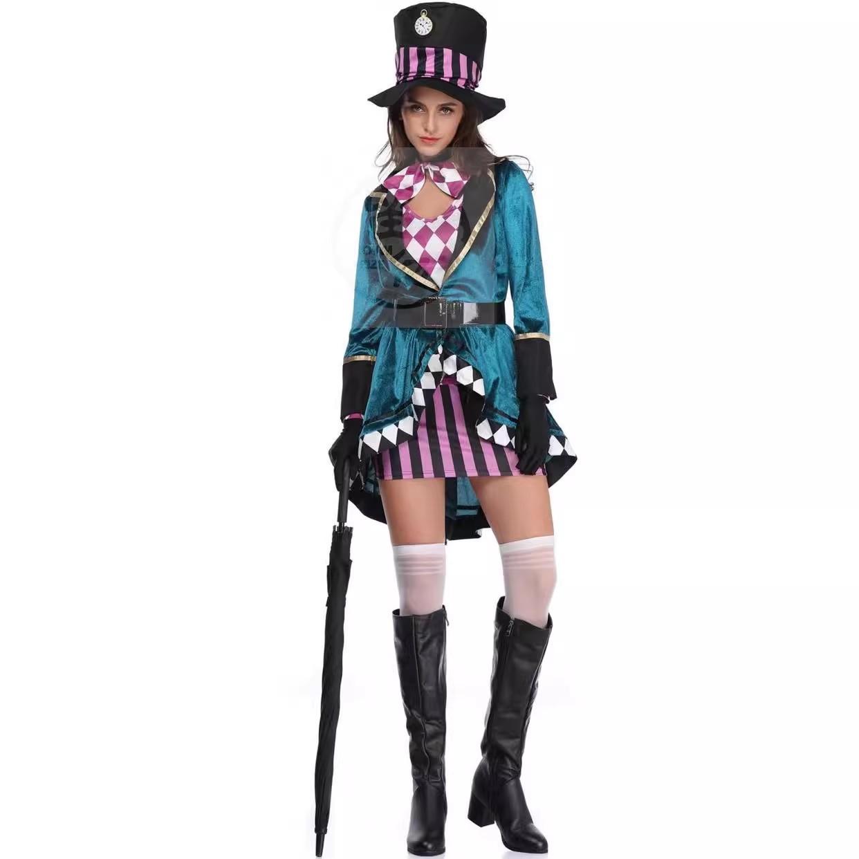 Disfraz de Mago de Halloween para Adulto Femenino Alicia Sombrero Loco Cosplay Disfraz de Escenario