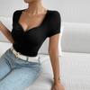 Ropa de mujer europea y americana de comercio exterior transfronterizo de Amazon, otoño 2024, nueva moda urbana, top de manga corta plisado de punto