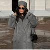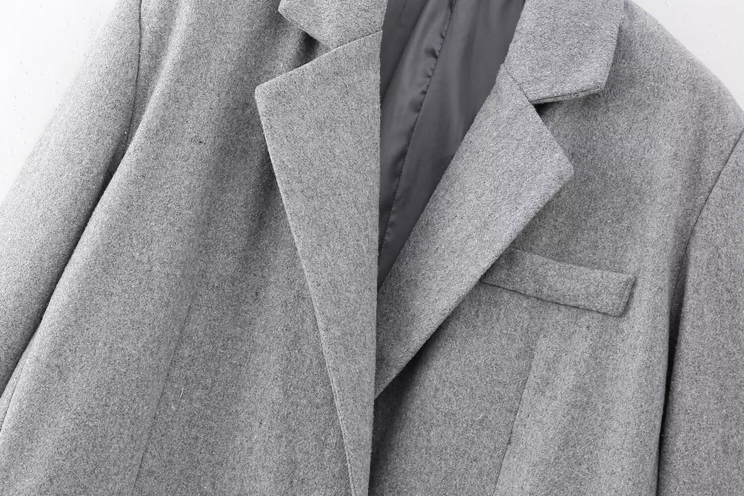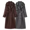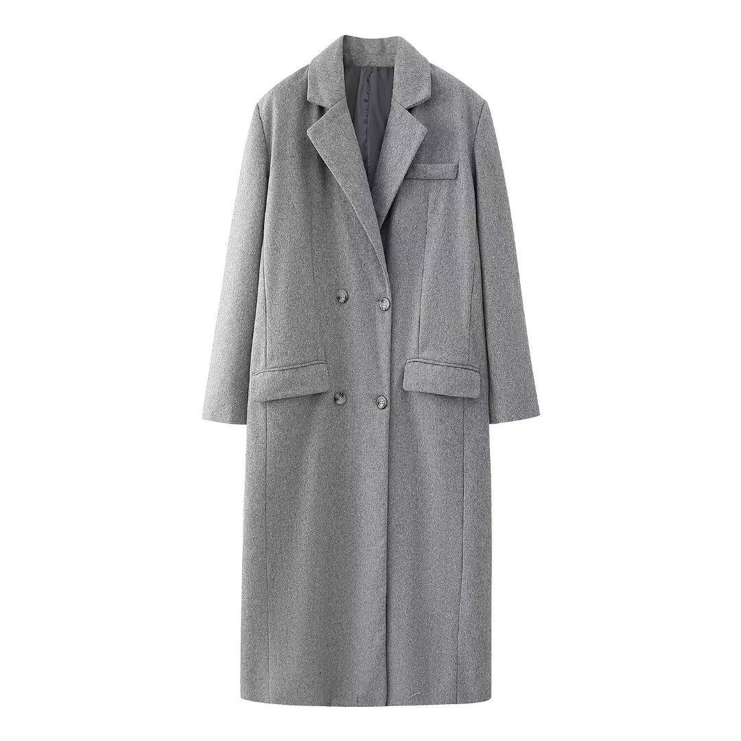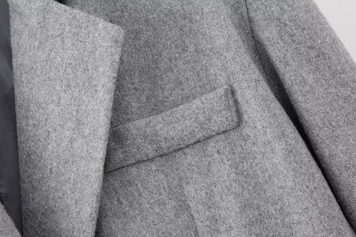 Abrigo de lana elegante y largo para mujer, ropa transfronteriza europea y americana, otoño 2023, nuevo, con decoración de bolsillo de color sólido