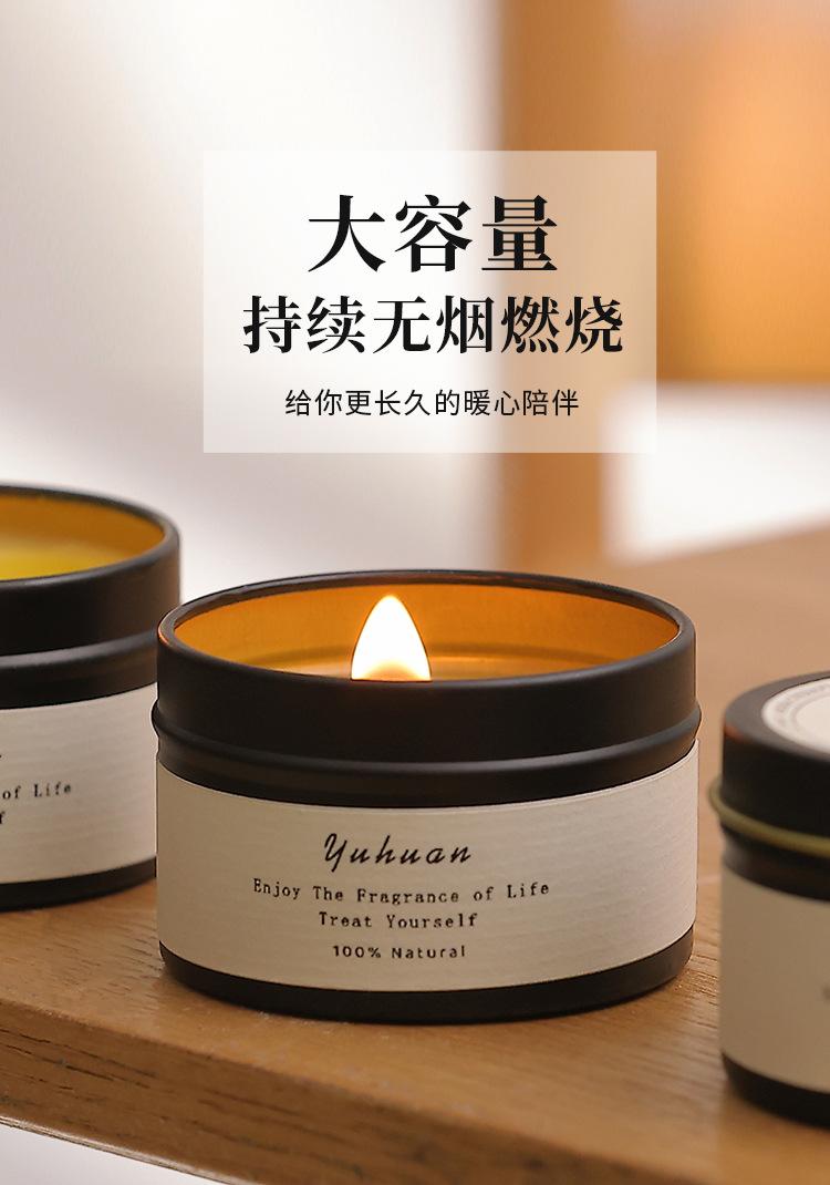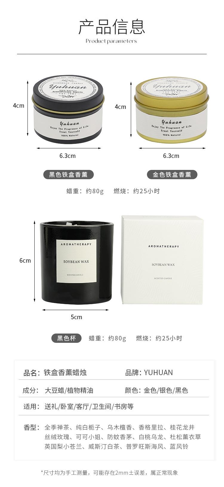Vela de aromaterapia de cera de soja de baja temperatura sin humo, vela de aromaterapia de aromaterapia de larga duración para el hogar, vela de lata de hierro transfronteriza, venta al por mayor
