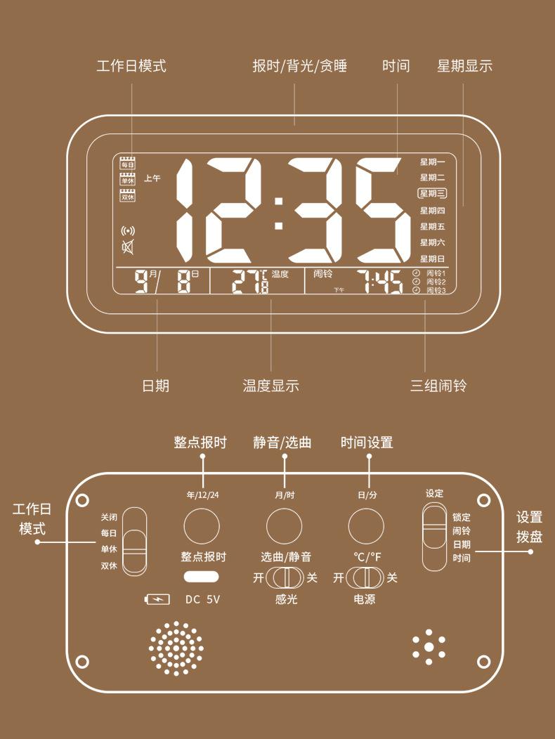 Strong wake-up [multi-function temperature and humidity alarm clock] white-ring for 5 minutes * USB charging √ super long standby