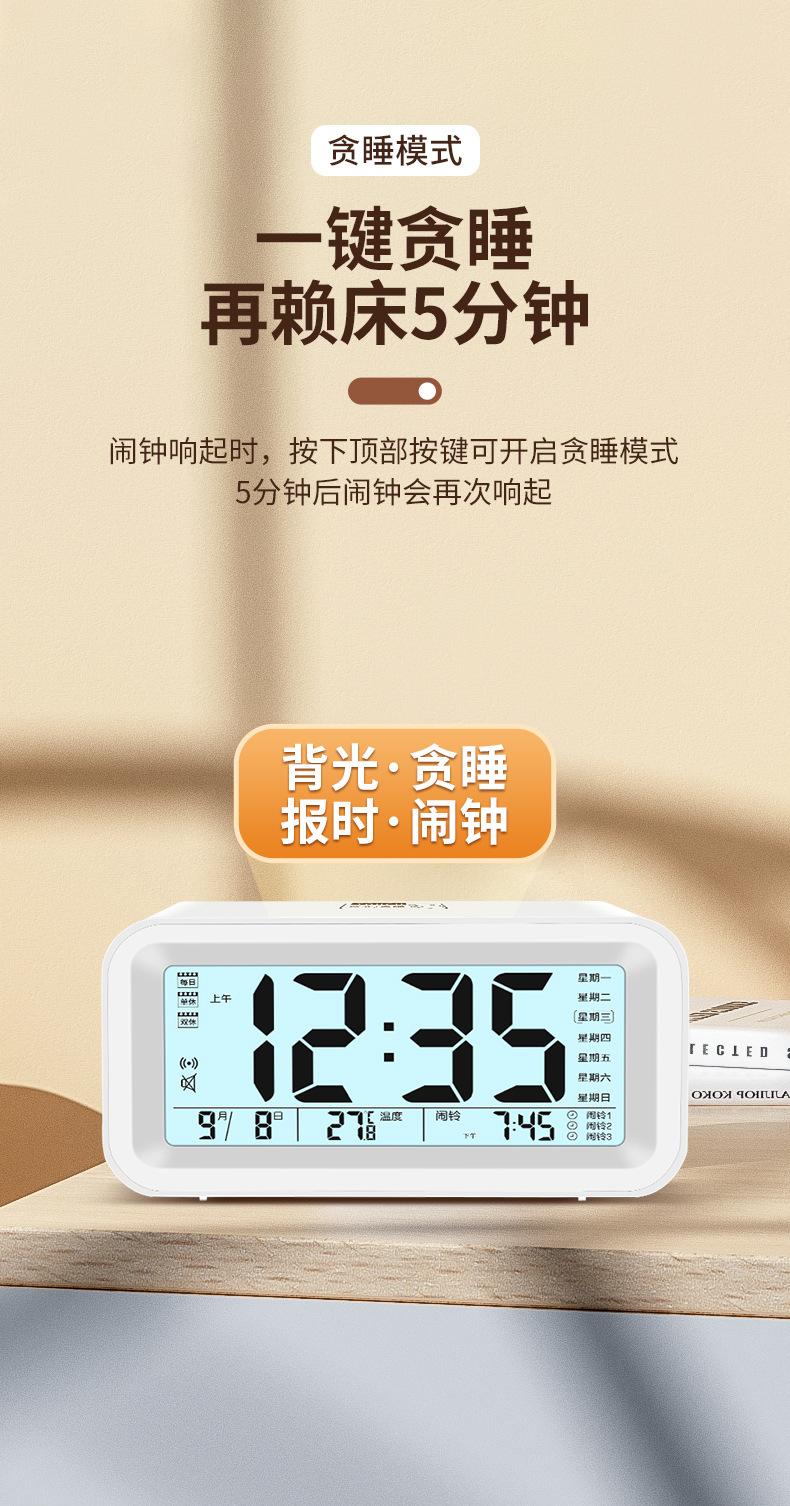 Touch-white [alarm clock date temperature★Luminous Large Screen] Super Long Standby √ Send Battery