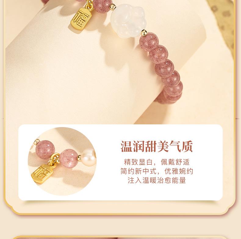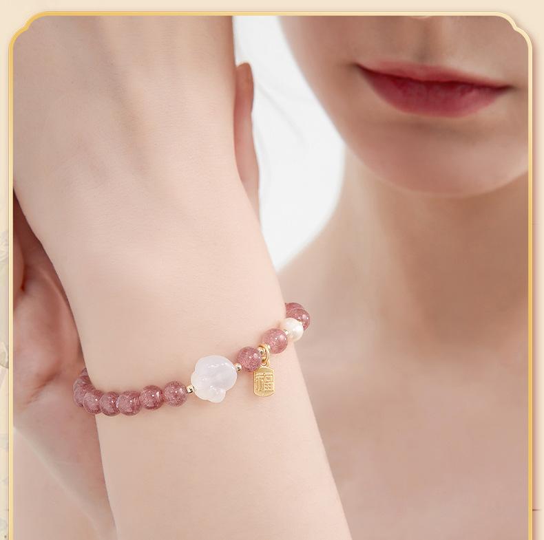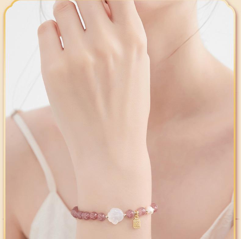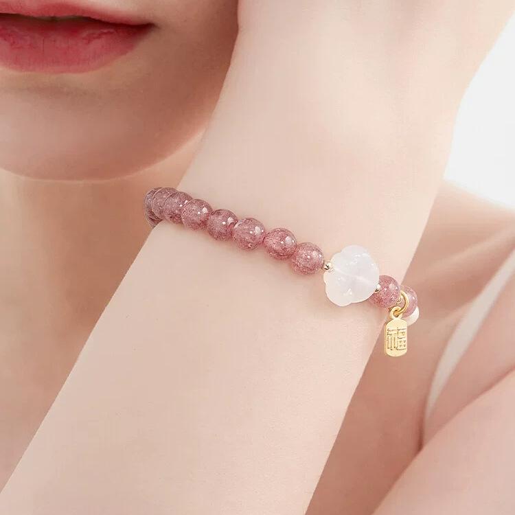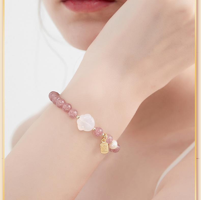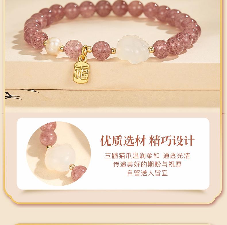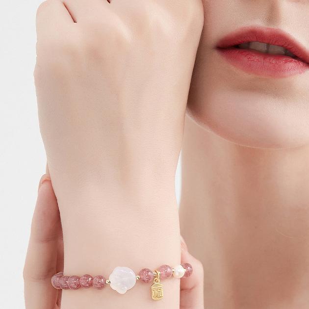 Compra Pulsera de cristal de fresa natural, pulsera de perlas para mujer, nueva pulsera china, pulsera de garra de gato, marca Fu, pulsera de moda nacional, venta al por mayor al por mayor en Joom.pro