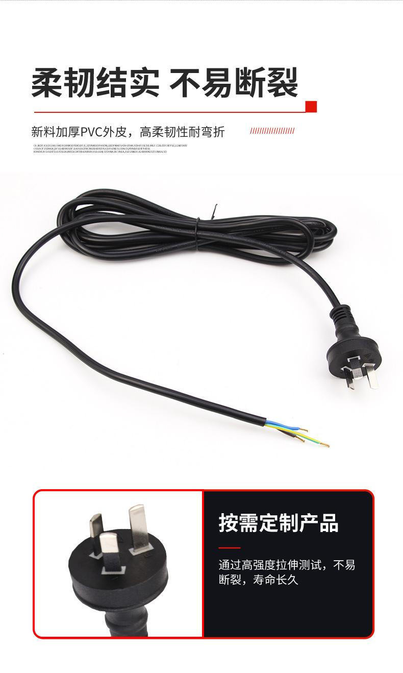 Cable de alimentación de tres núcleos, estándar australiano, cable de extensión de cola desnuda, cable de enchufe de tres clavijas, suministro al por mayor