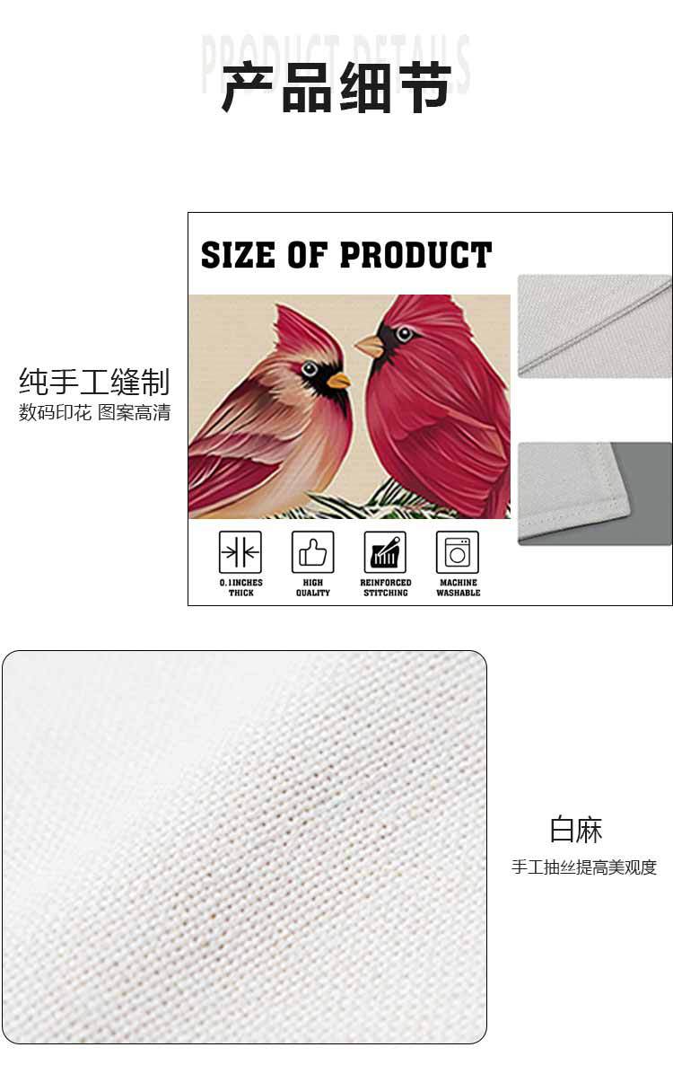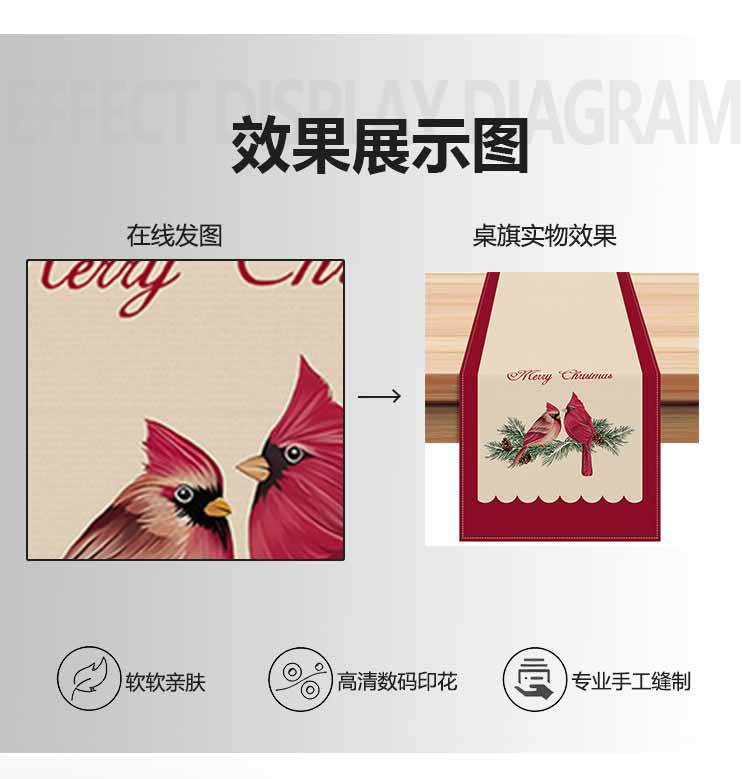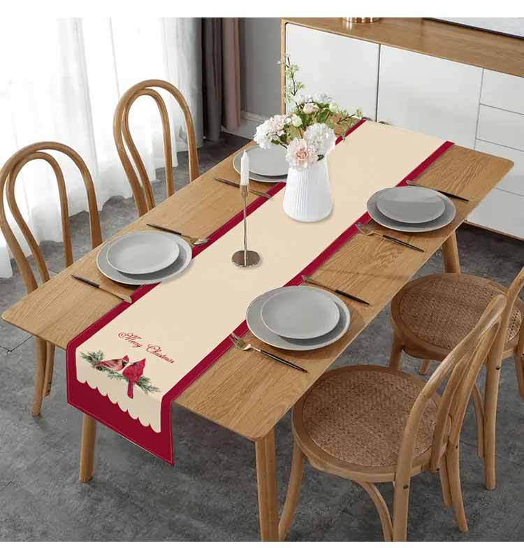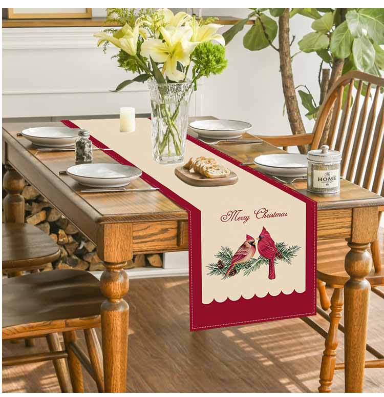 Camino de Mesa Navideño Transfronterizo Pájaro Rojo Lino Blanco Decoración Familiar Mantel Sala de Estar Festival Almohadilla de Mantel en stock