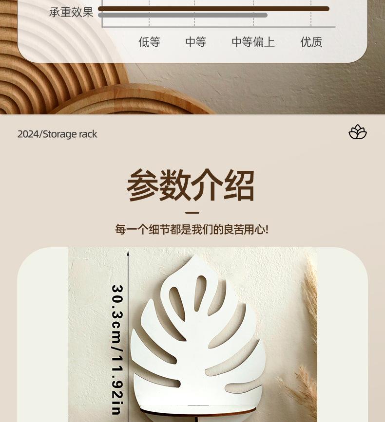 Nuevos productos transfronterizos, forma de hoja, artesanías de madera, estante de almacenamiento hueco, almacenamiento, decoración de pared simple para el hogar, colgante