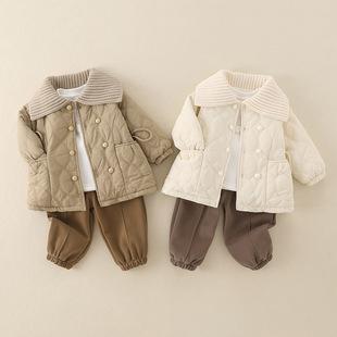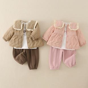 | Chaleco para niños estilo coreano ropa para niños 2025 estilo de invierno bebé niña moderna cálida para niños pequeños con forro polar gruesa ropa exterior conjunto de tres piezas |
