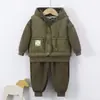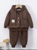| Chamarra acolchada con forro polar para bebé niño invierno 2025 nuevo estilo niño pequeño bebé sudadera polar con capucha a la moda conjunto de tres piezas |