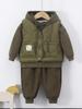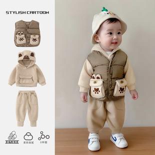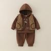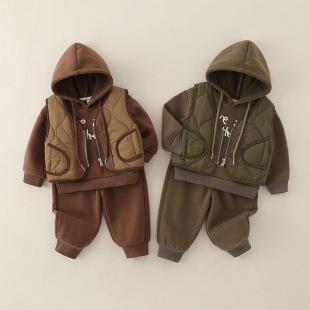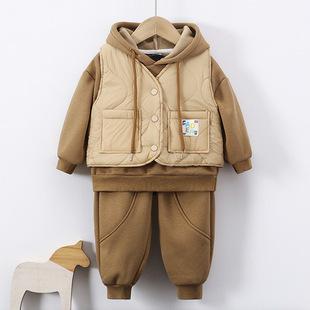 | Nuevo conjunto de tres piezas de chaleco para otoño e invierno para niños, ropa exterior con capucha, conjunto para bebé, ropa gruesa y cálida para niños, ropa para niños |
