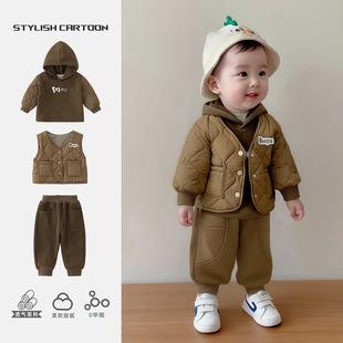 | Conjunto de Otoño e Invierno para Niños Nuevo Moderno 2025 Bebé Engrosado con Capucha Chaleco Acolchado Infantil Estilo Coreano Conjunto de Tres Piezas |