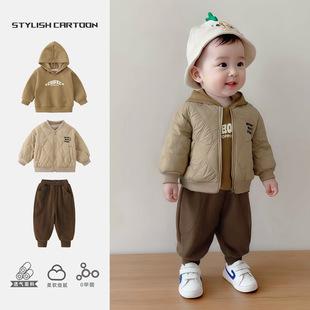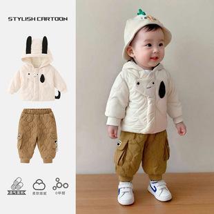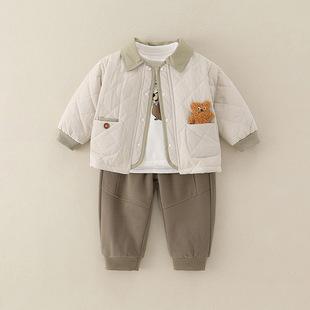 | Conjunto de tres piezas para bebés y niños pequeños otoño/invierno 2025 nuevo estilo clase A lindo caricatura abrigo delgado de algodón conjunto exterior para bebé |