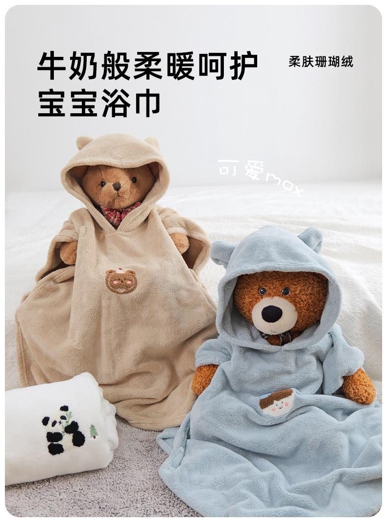 Bata Capa para Niños Vellón Coral Bebé con Capucha Toalla de Baño de Dibujos Animados para Bebé Baño Invierno Gruesa con Capucha Absorbente