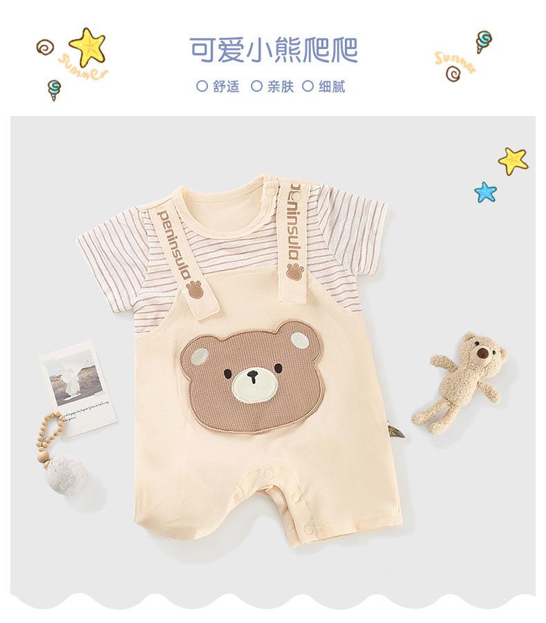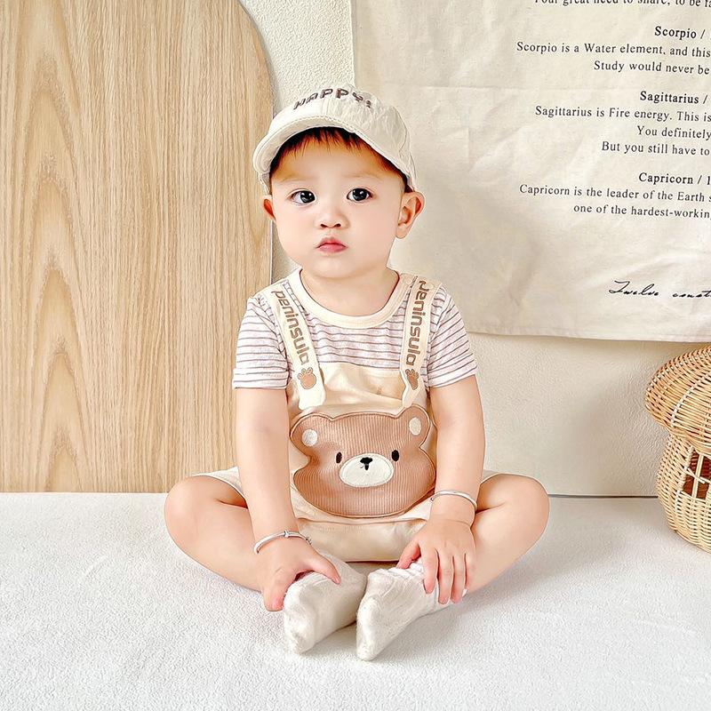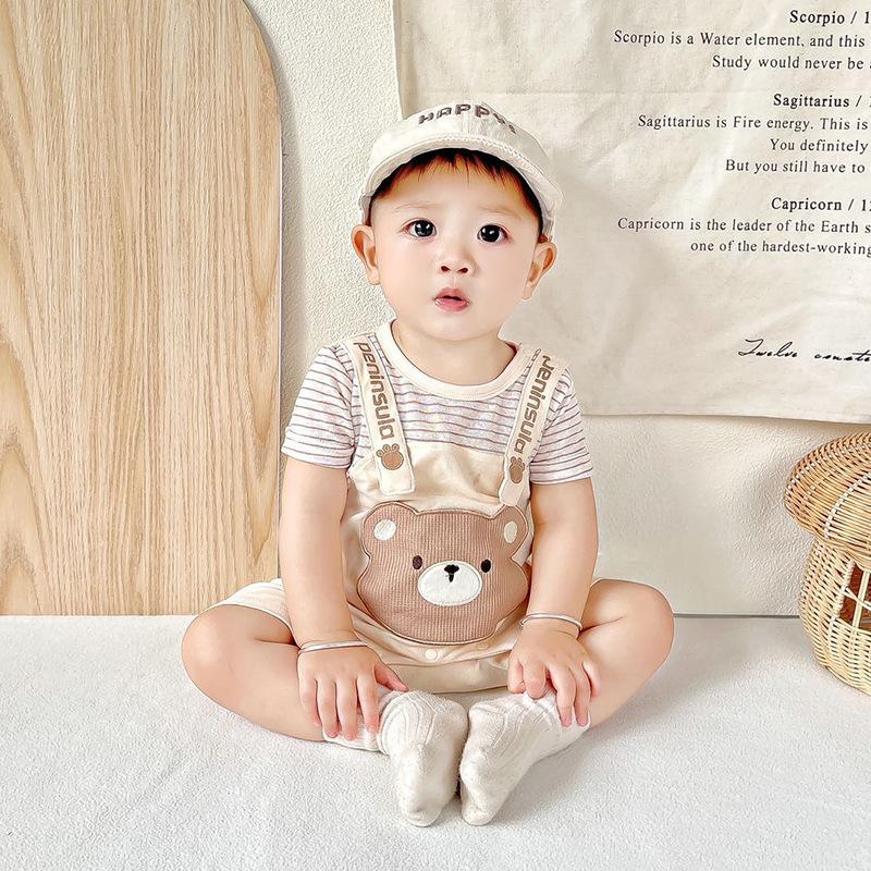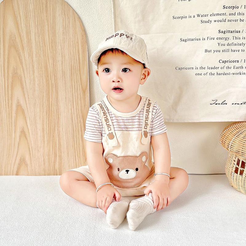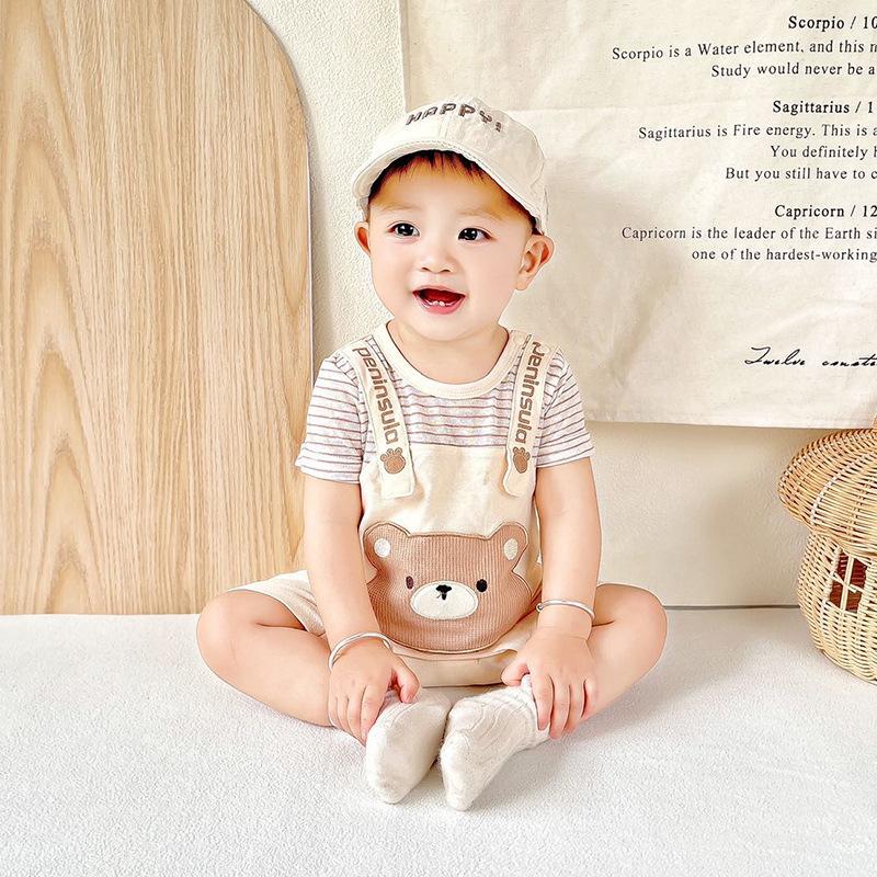 Mono de bebé de verano nuevo para niño, ropa con tirantes y cabeza de oso para bebé, ropa para recién nacido, ropa para bebé