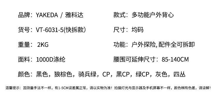 Chaleco Táctico Yakoda Molle Liberación Rápida Chaleco Táctico Multifuncional para Exteriores Equipo Venta Directa de Fábrica