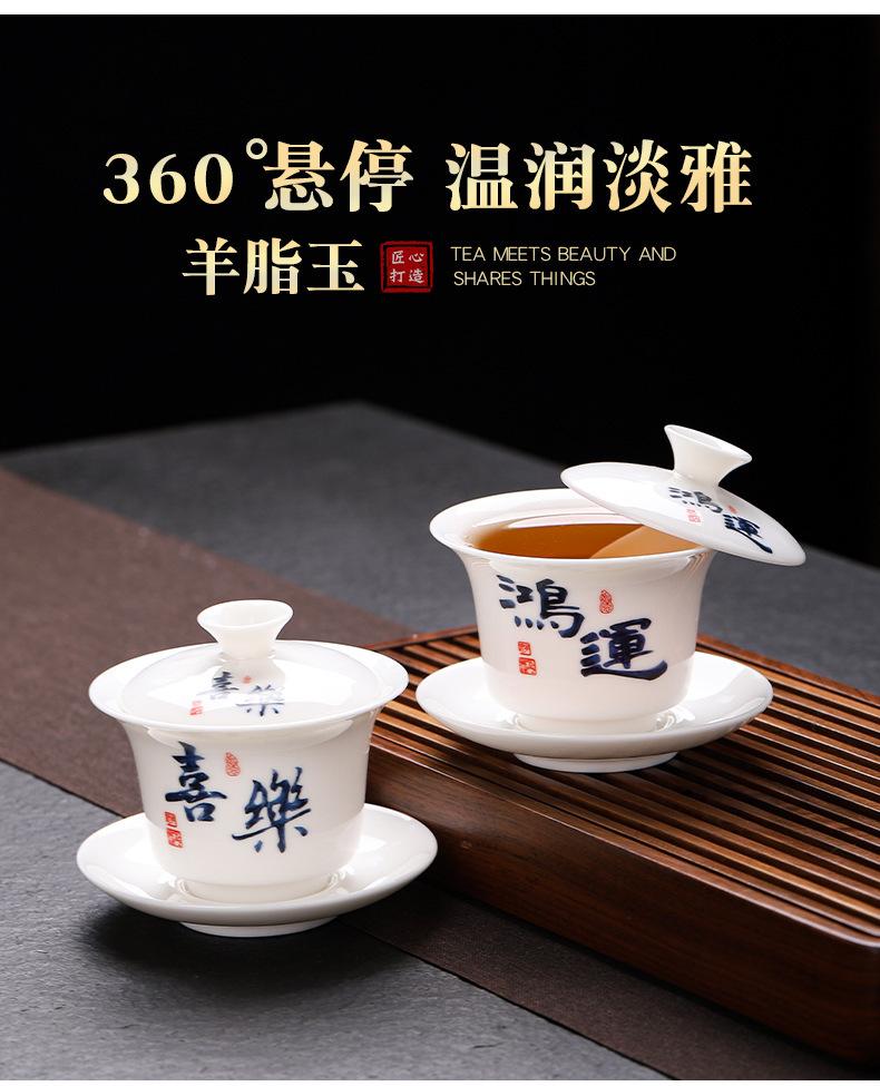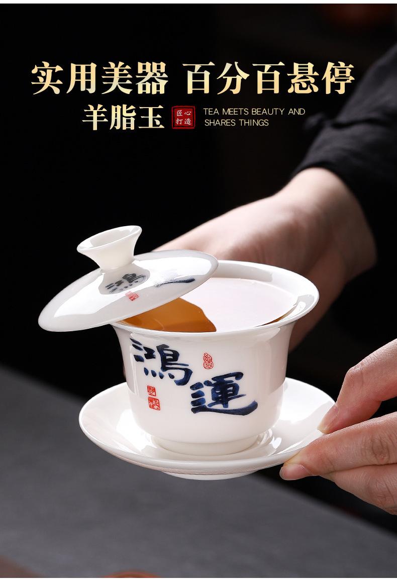 Cuenco de té de jade de sebo Dehua, cuenco de té simple, taza de té grande individual, cuenco de té giratorio, no caliente, té de Kung Fu
