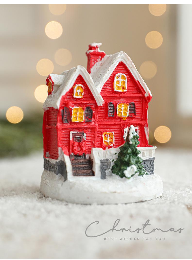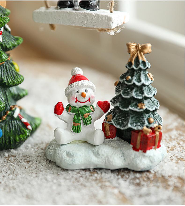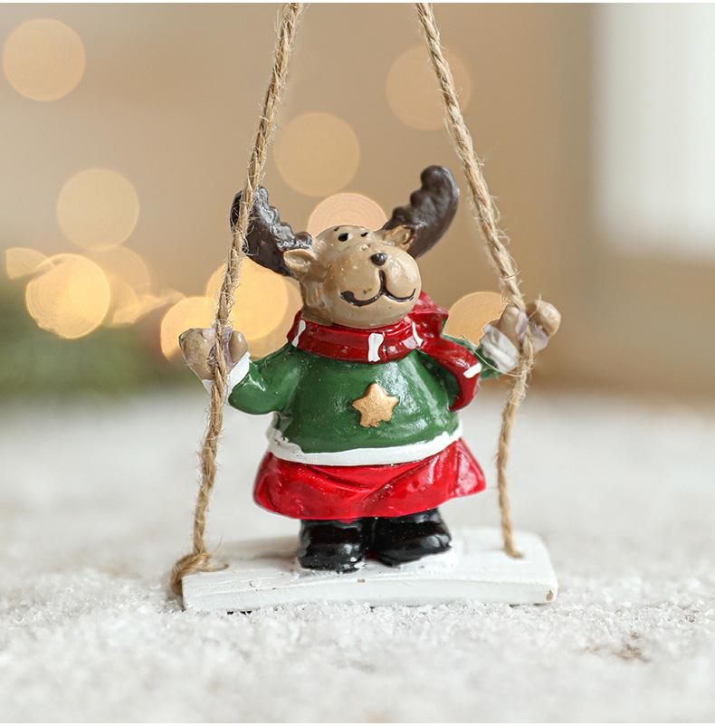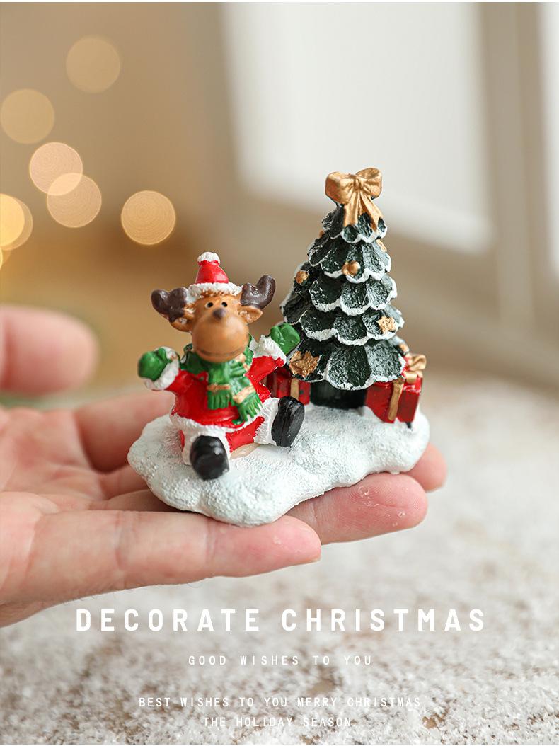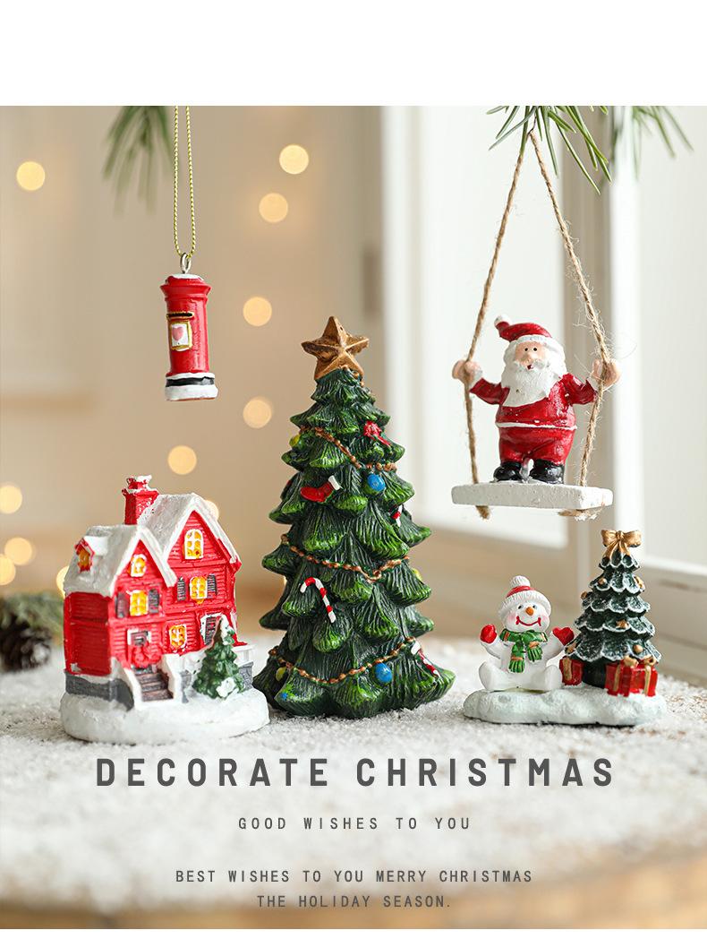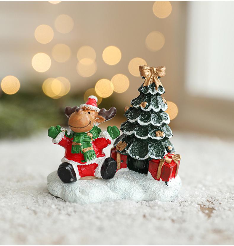 Adornos navideños transfronterizos de resina, miniadornos de escritorio, casa de nieve de alce, decoración colgante de árbol de Navidad pintado