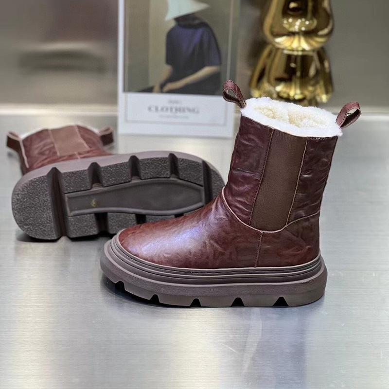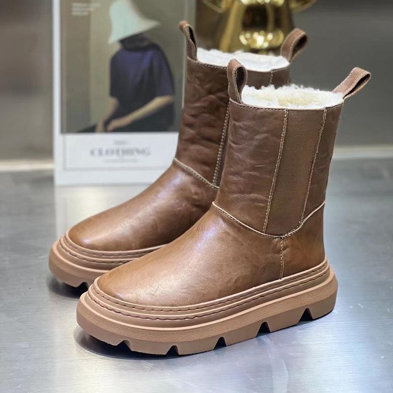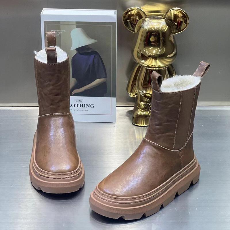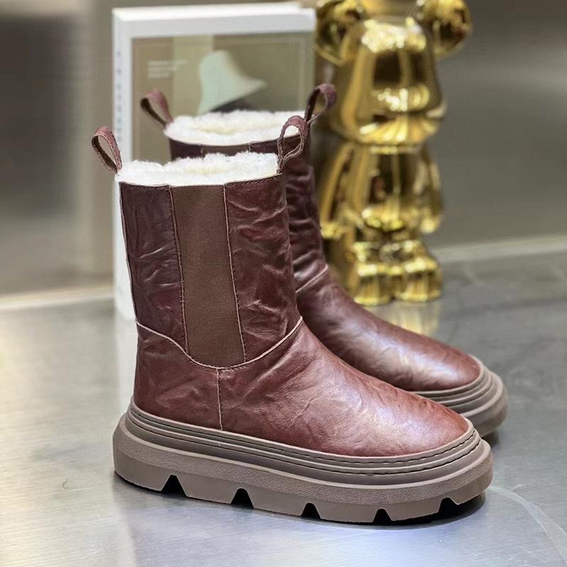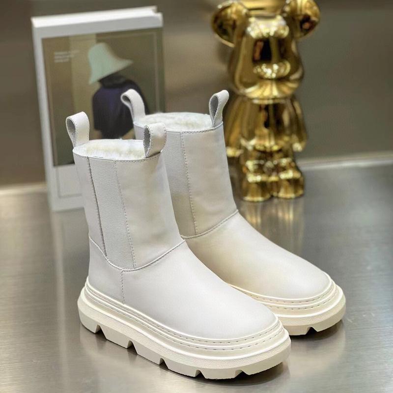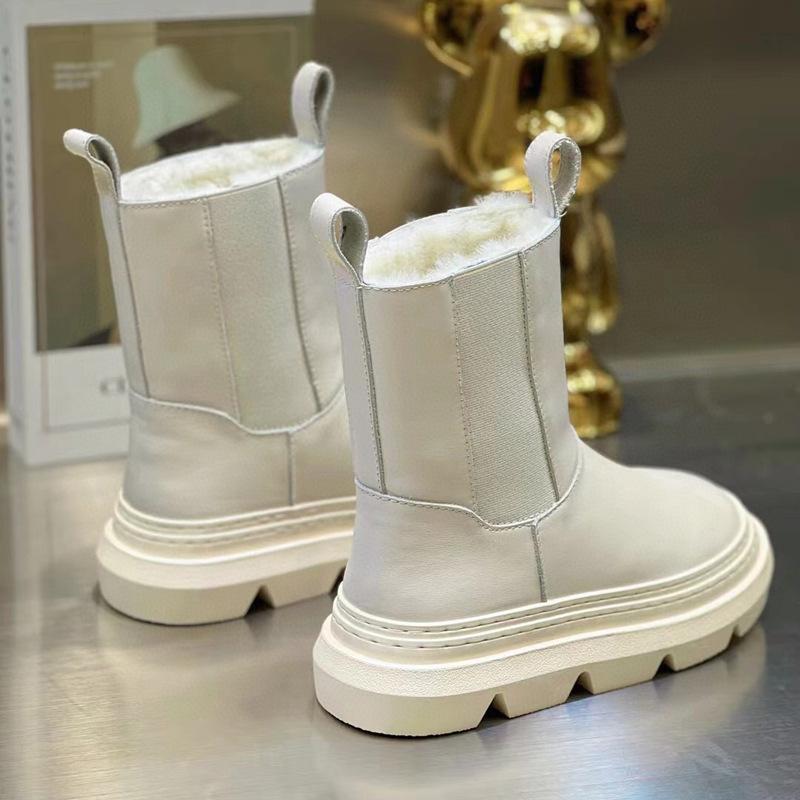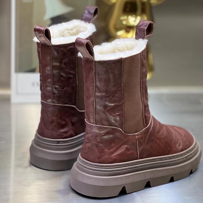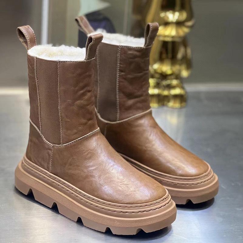 Botas de Nieve 2023, Zapatos Cálidos de Algodón, Botas de Media Caña de Piel de Vaca, Botas Elásticas Sin Cordones Integradas de Piel de Cabra y Lana, Antideslizantes y Resistentes al Frío