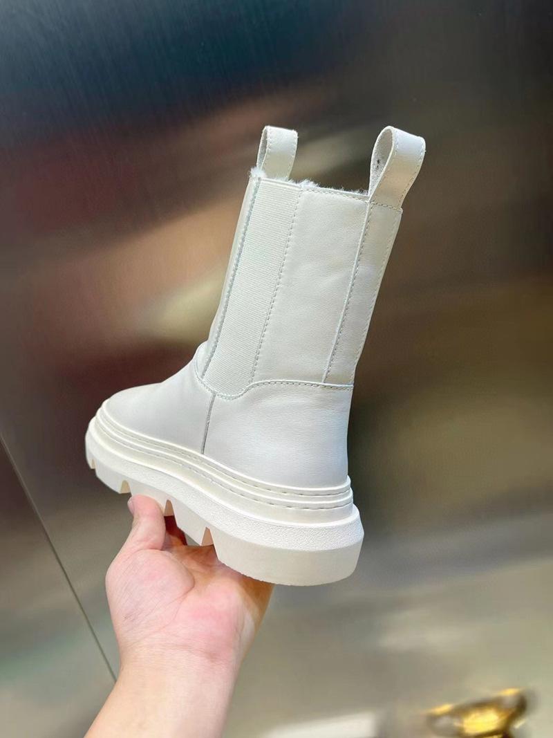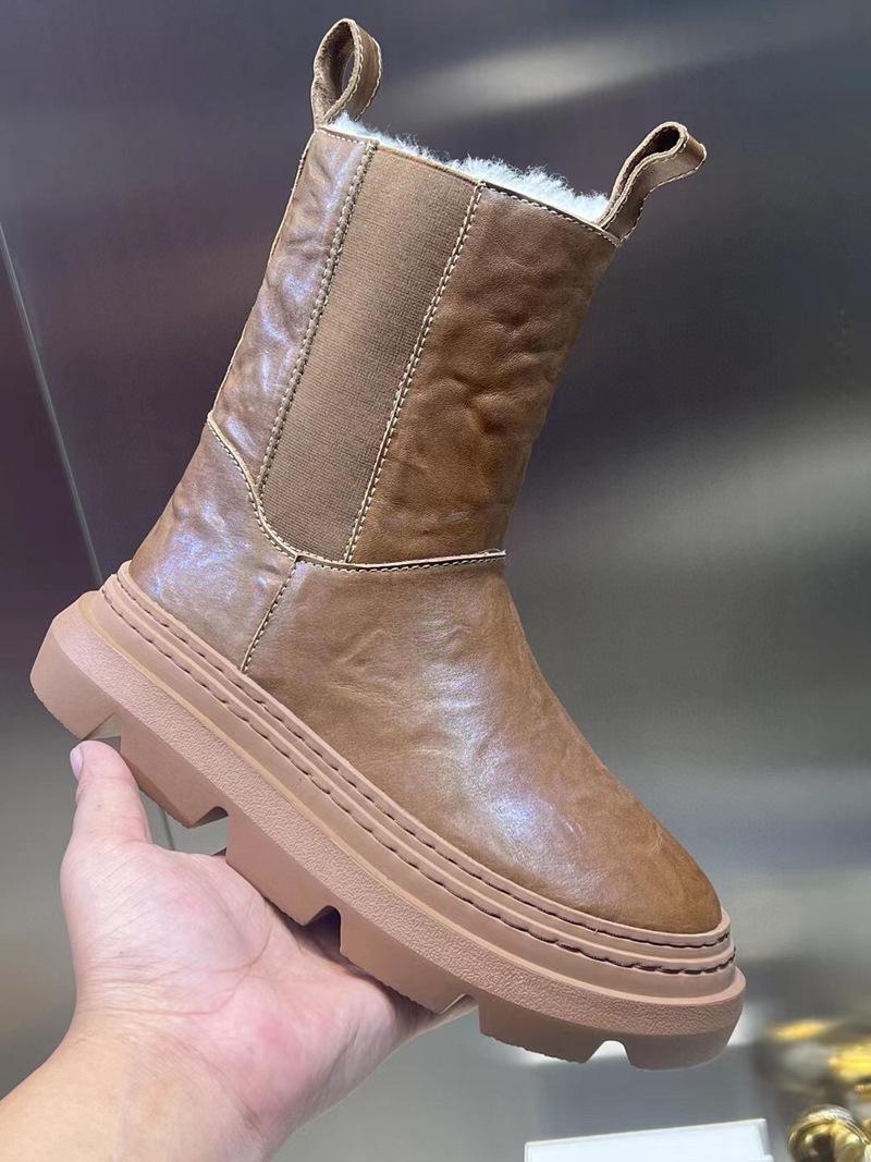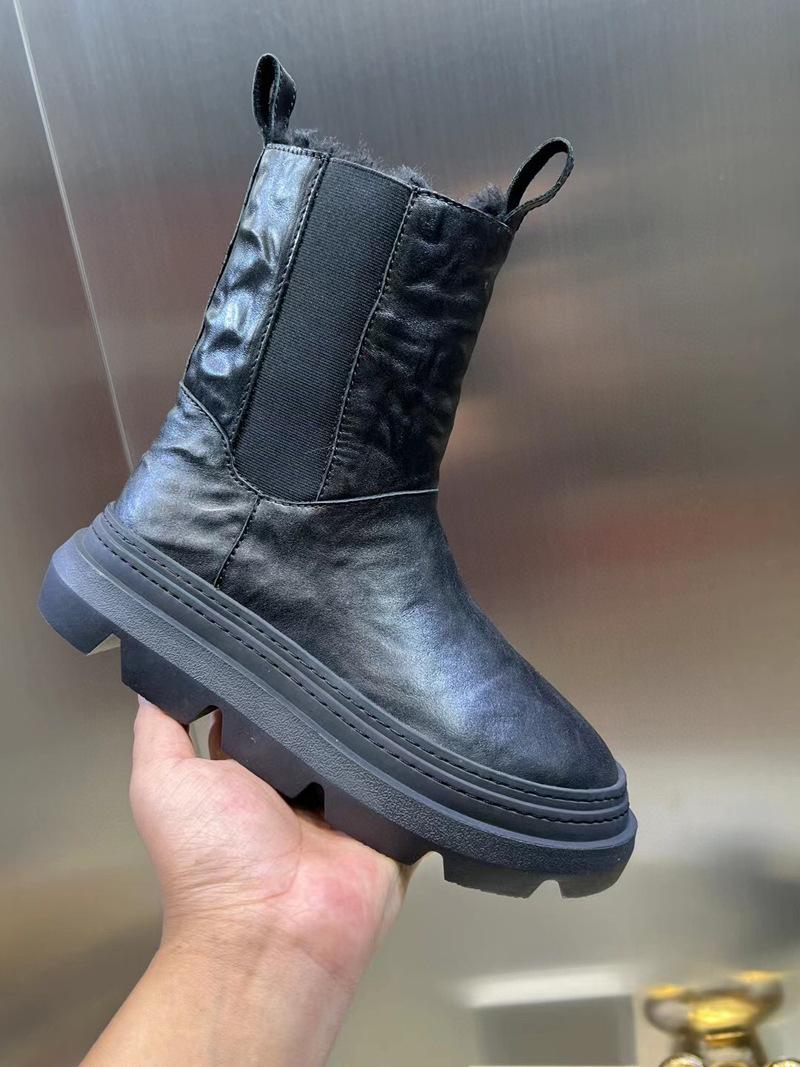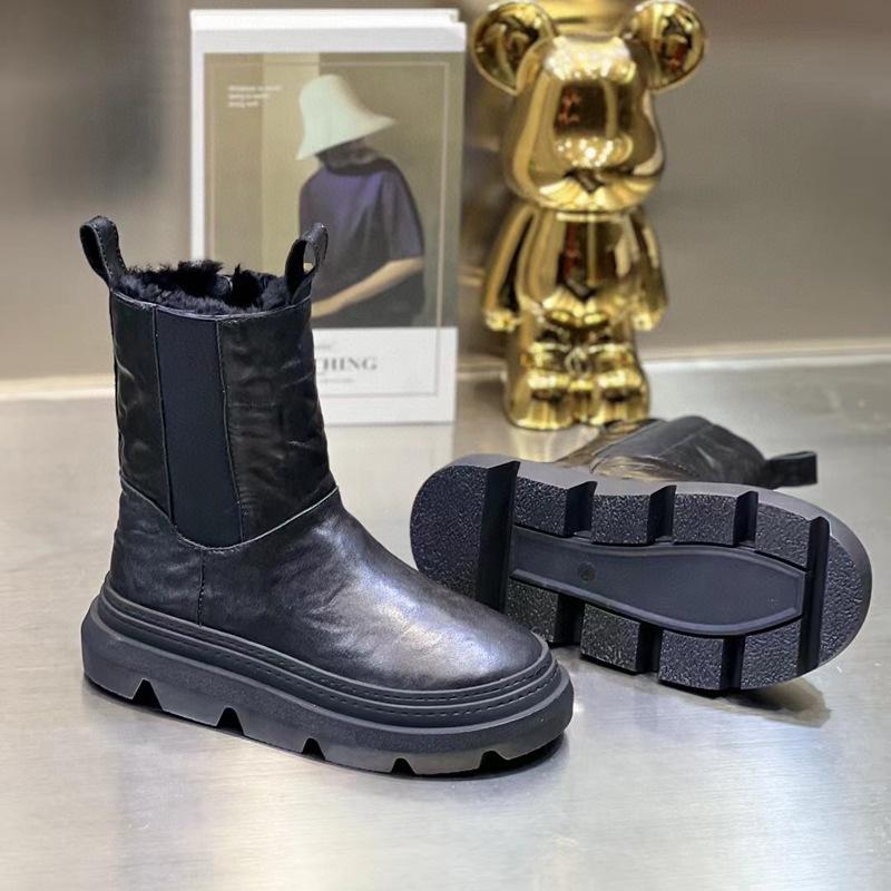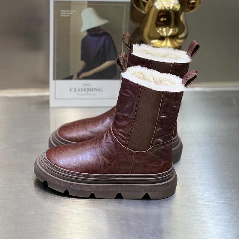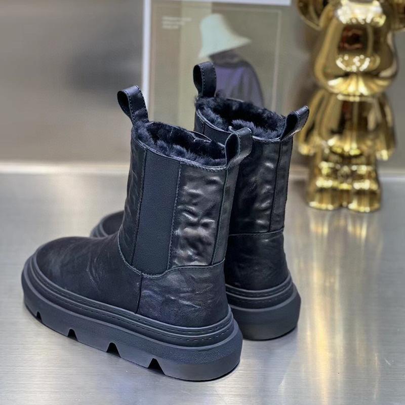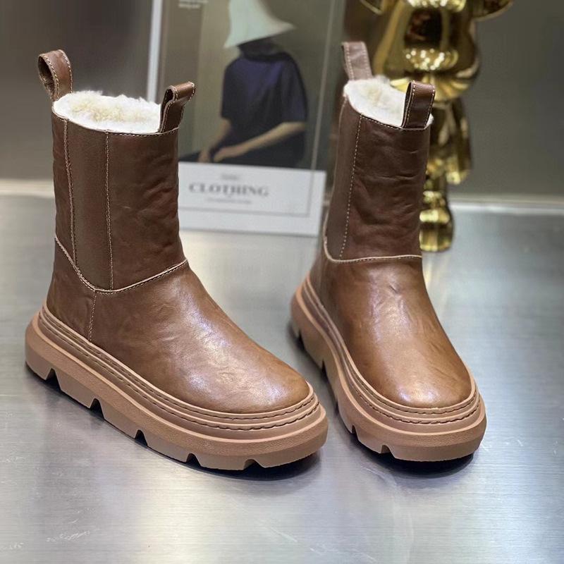 Botas de Nieve 2023, Zapatos Cálidos de Algodón, Botas de Media Caña de Piel de Vaca, Botas Elásticas Sin Cordones Integradas de Piel de Cabra y Lana, Antideslizantes y Resistentes al Frío