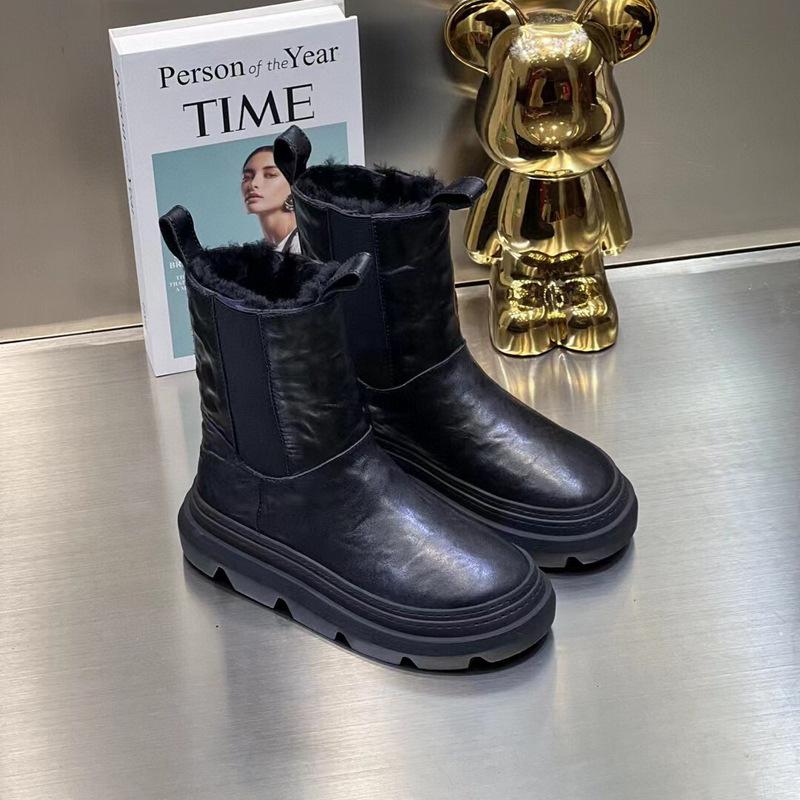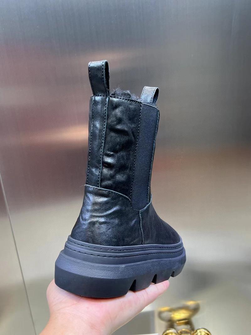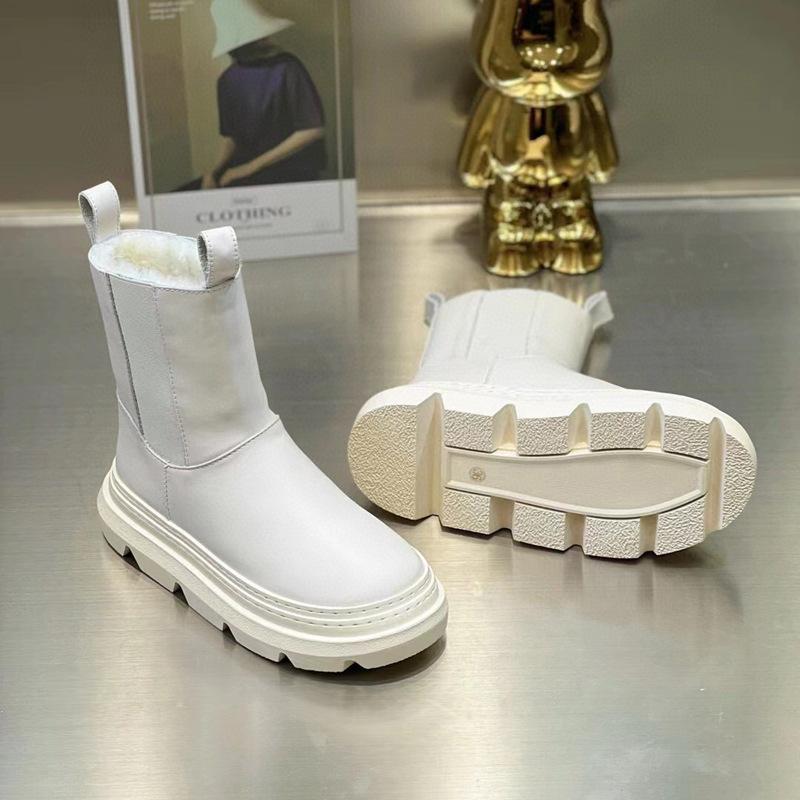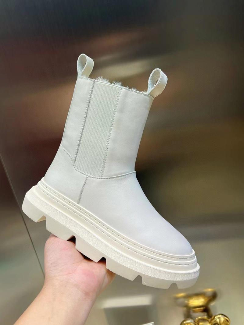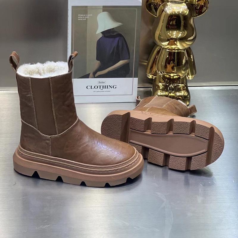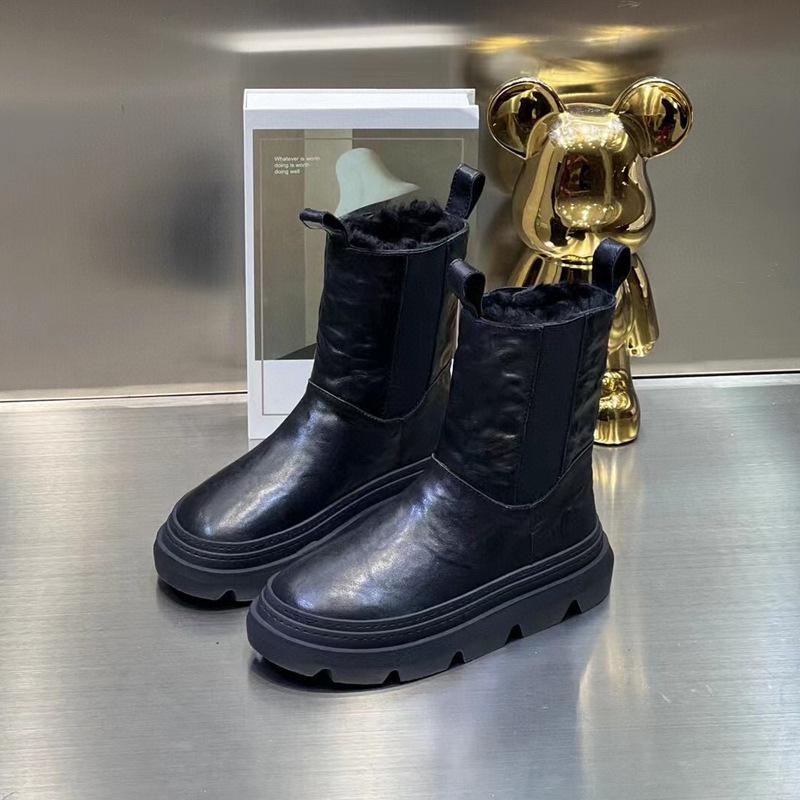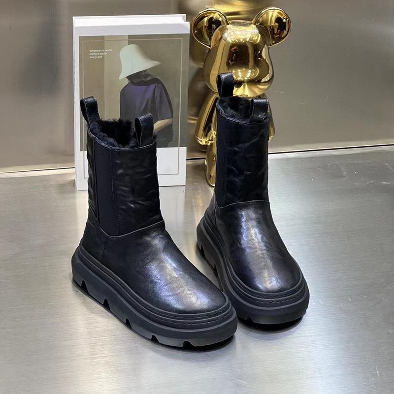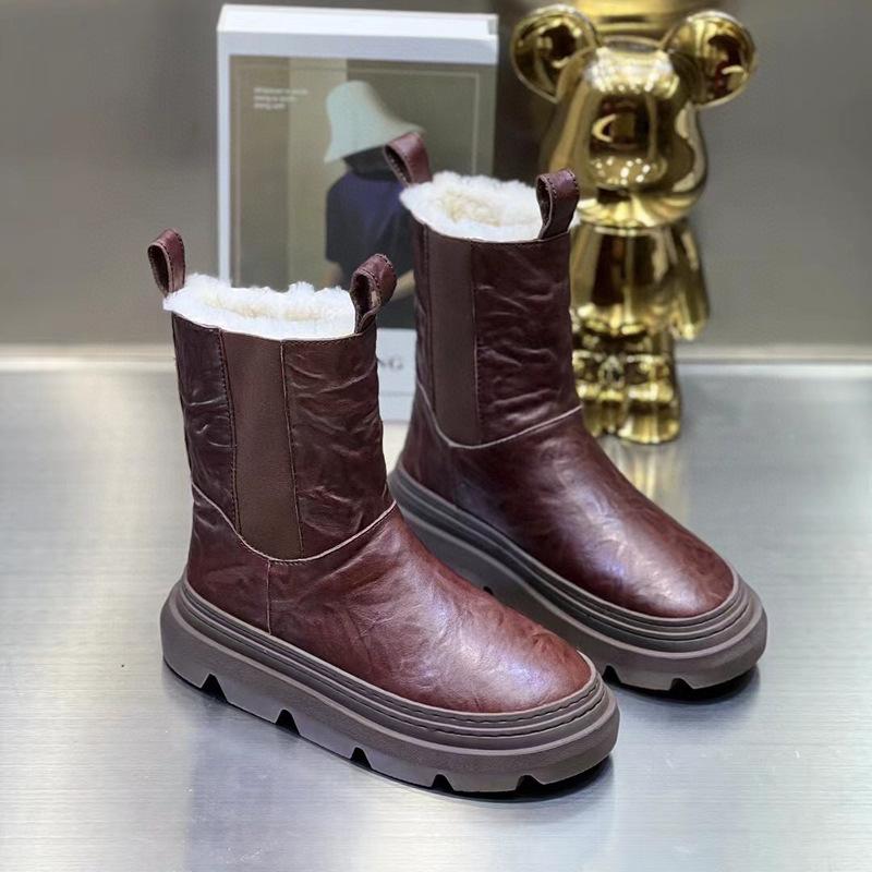 Botas de Nieve 2023, Zapatos Cálidos de Algodón, Botas de Media Caña de Piel de Vaca, Botas Elásticas Sin Cordones Integradas de Piel de Cabra y Lana, Antideslizantes y Resistentes al Frío