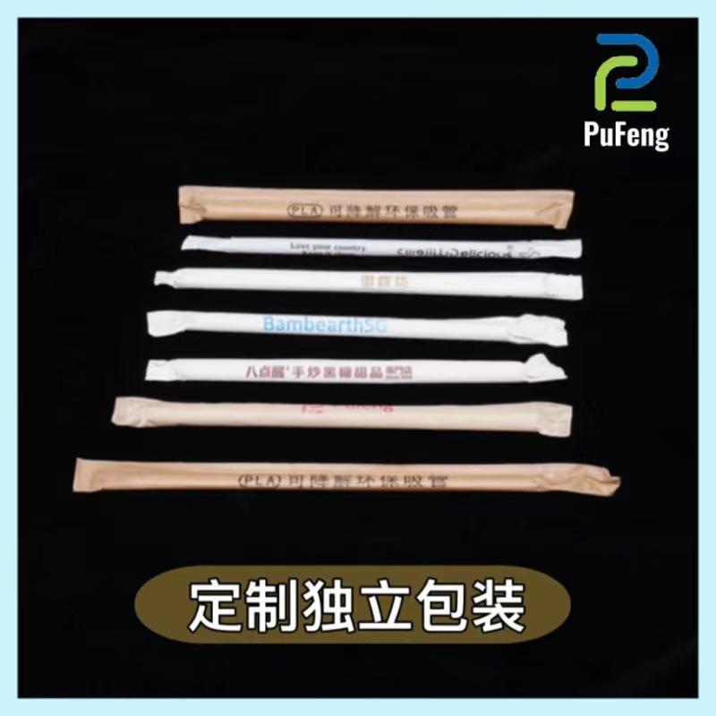 Pajita de café degradable, desechable, con envase independiente, con boca puntiaguda, para leche, té, zumo, yogur, pajita fina.