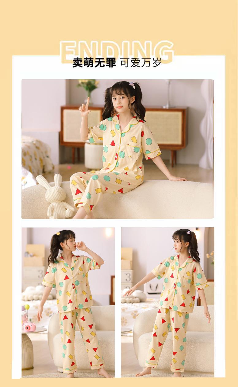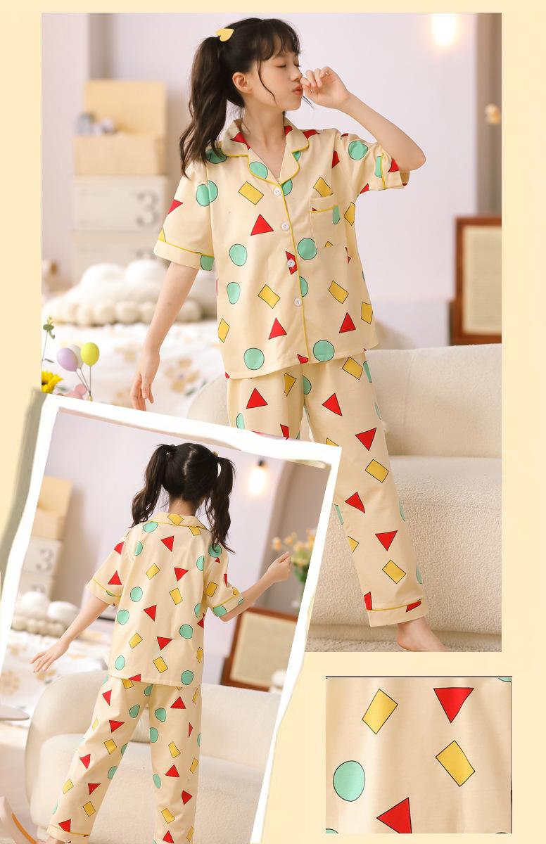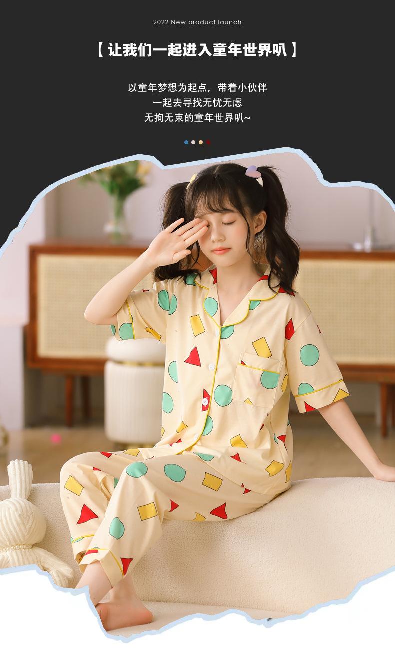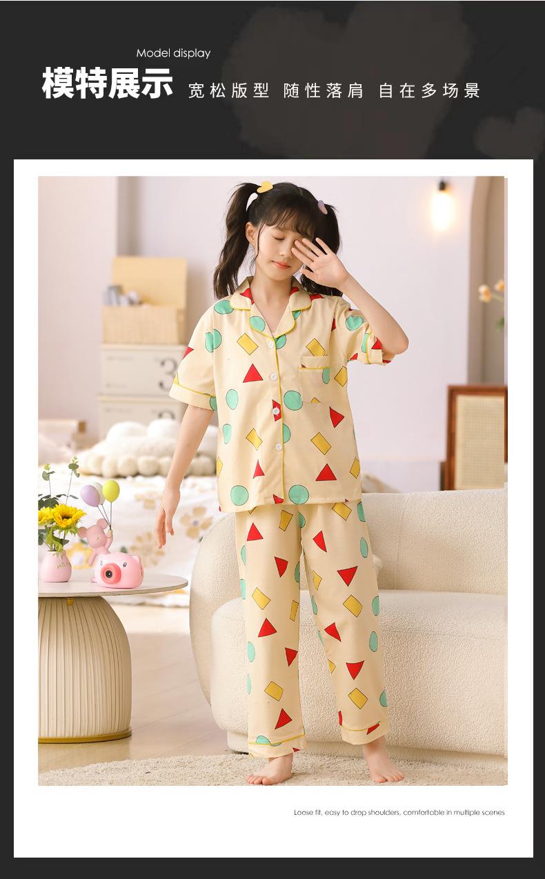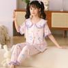 Pijamas nuevos de primavera y otoño para niñas, cárdigan de verano, ropa para el hogar, conjunto de pantalones de manga corta con dibujos animados, venta al por mayor