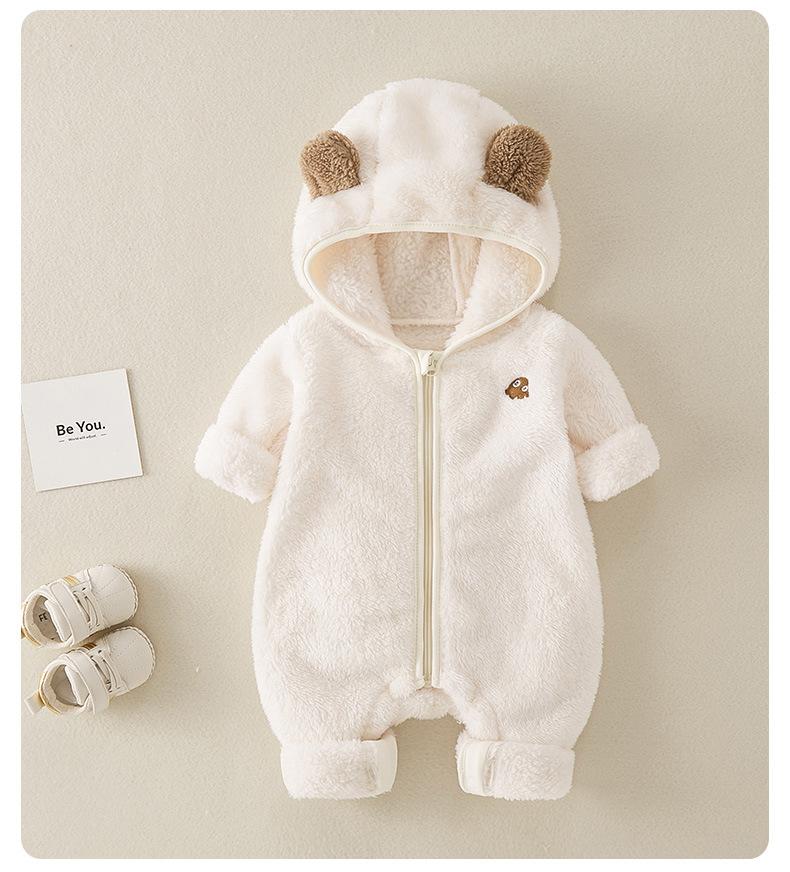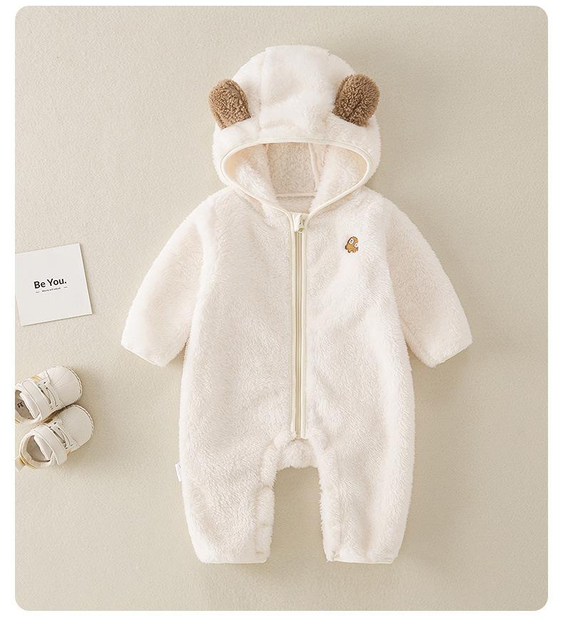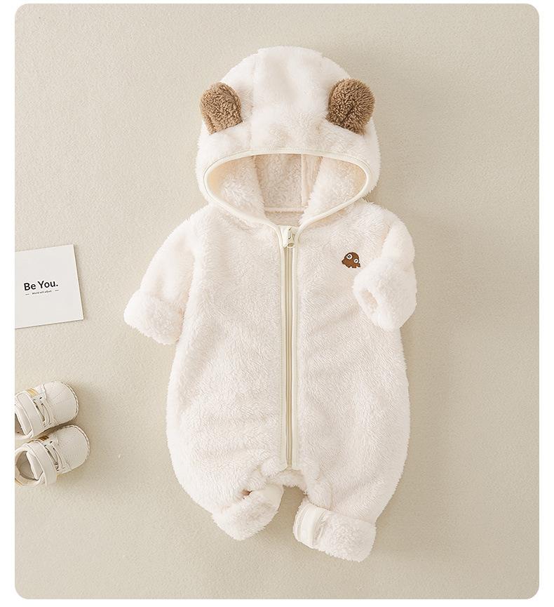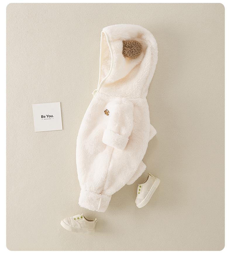 | Mameluco de otoño/invierno 2025 para bebés y niños pequeños, nuevo estilo, forrado de polar y engrosado, súper lindo, ropa exterior cálida de invierno para niña |